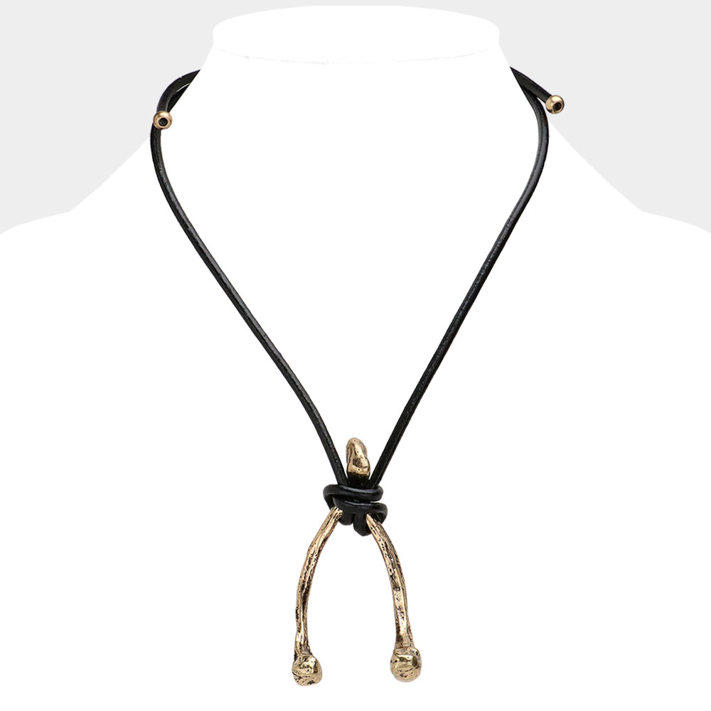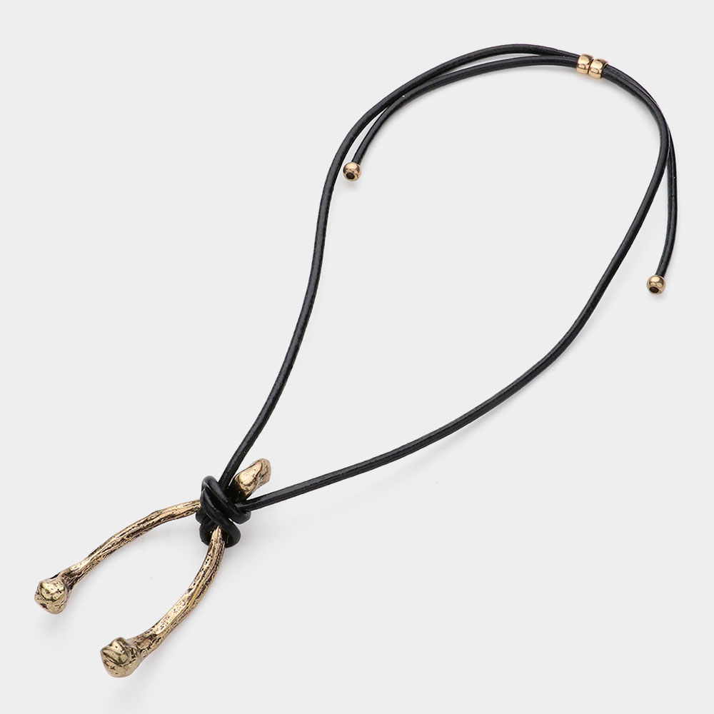 Crystal Rhinestone Paved Wishbone Pendant Necklace