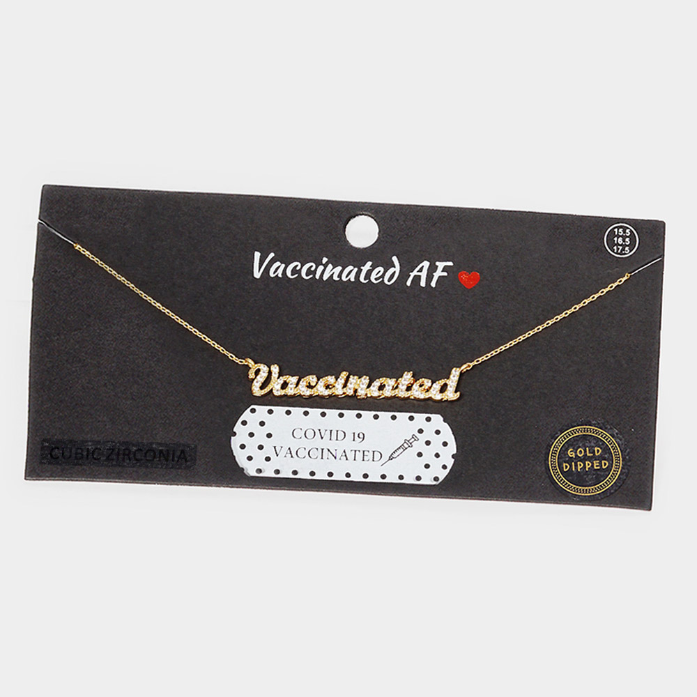 VACCINATED CZ Gold Dipped Message Pendant Necklace