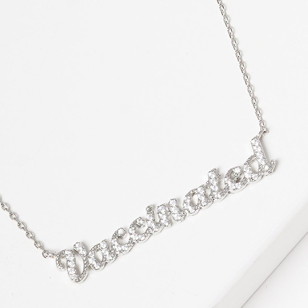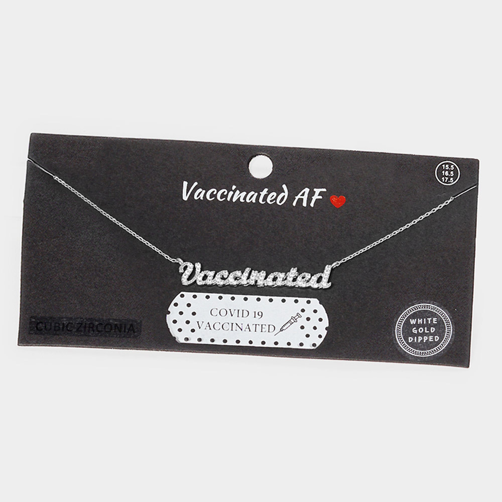 VACCINATED CZ White Gold Dipped Message Pendant Necklace