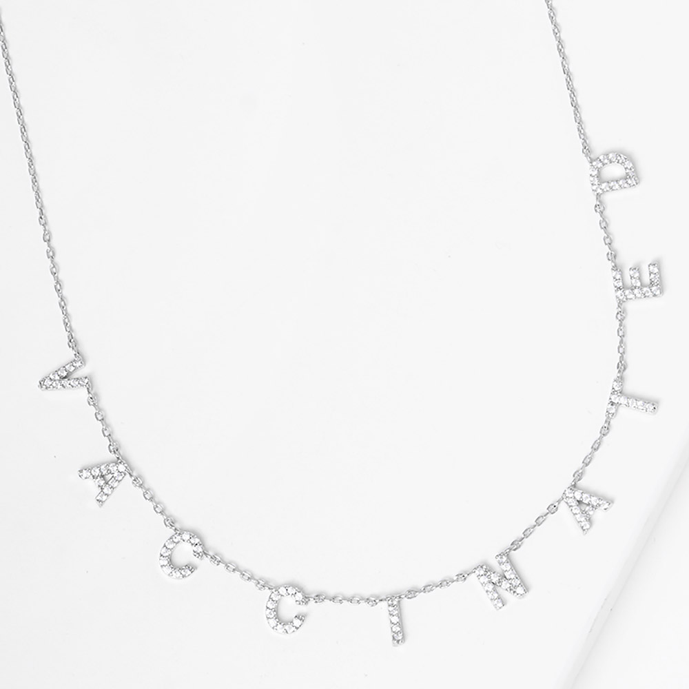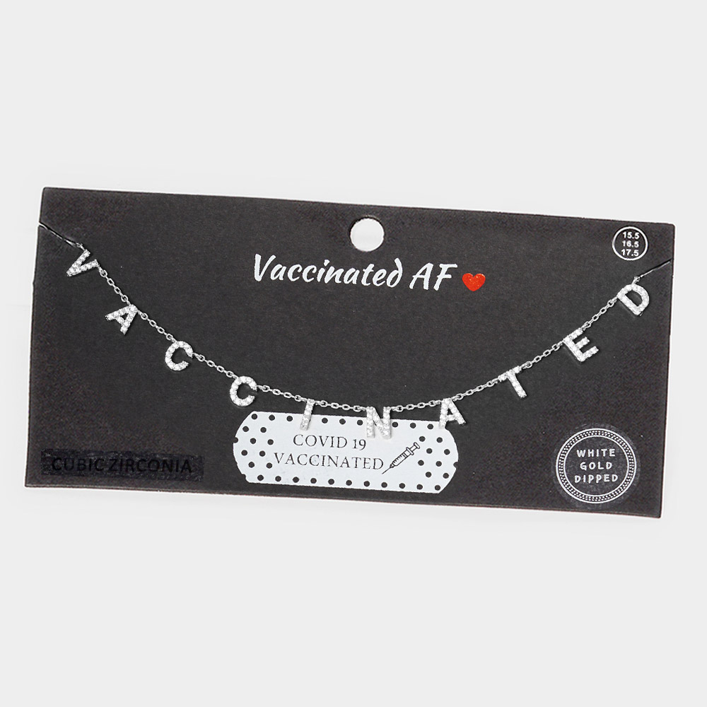 VACCINATED CZ White Gold Dipped Message Station Pendant Necklace