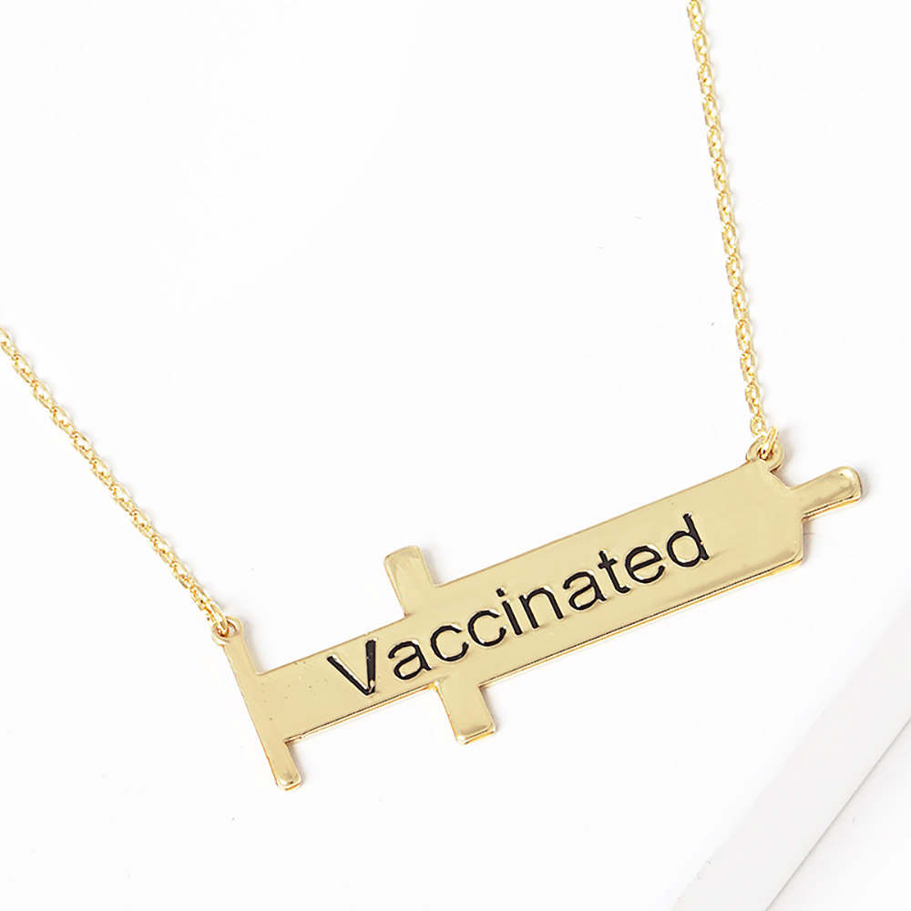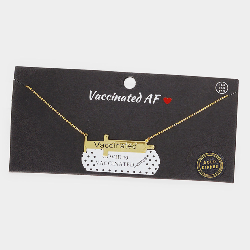 VACCINATED Gold Dipped Syringe Needle Message Pendant Necklace