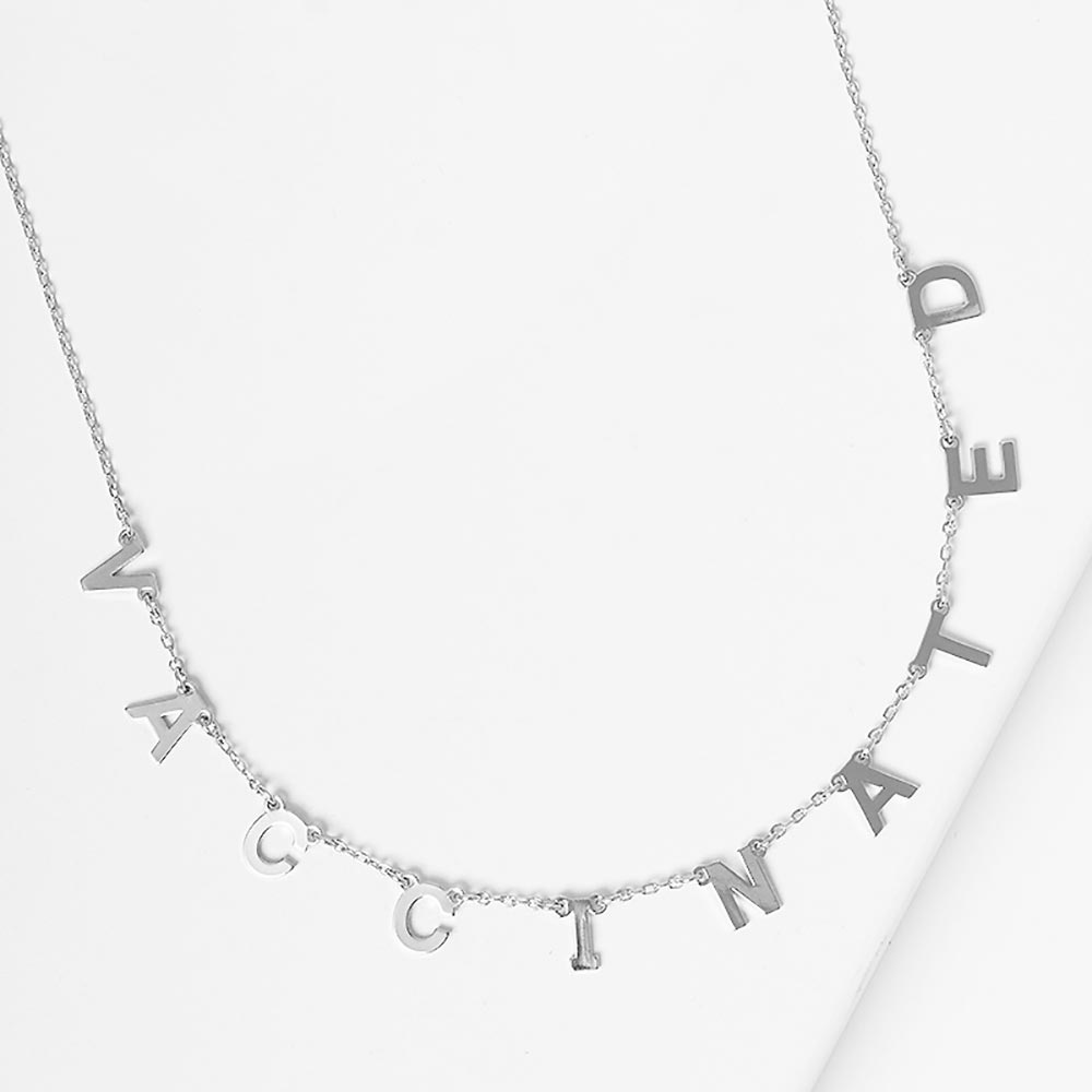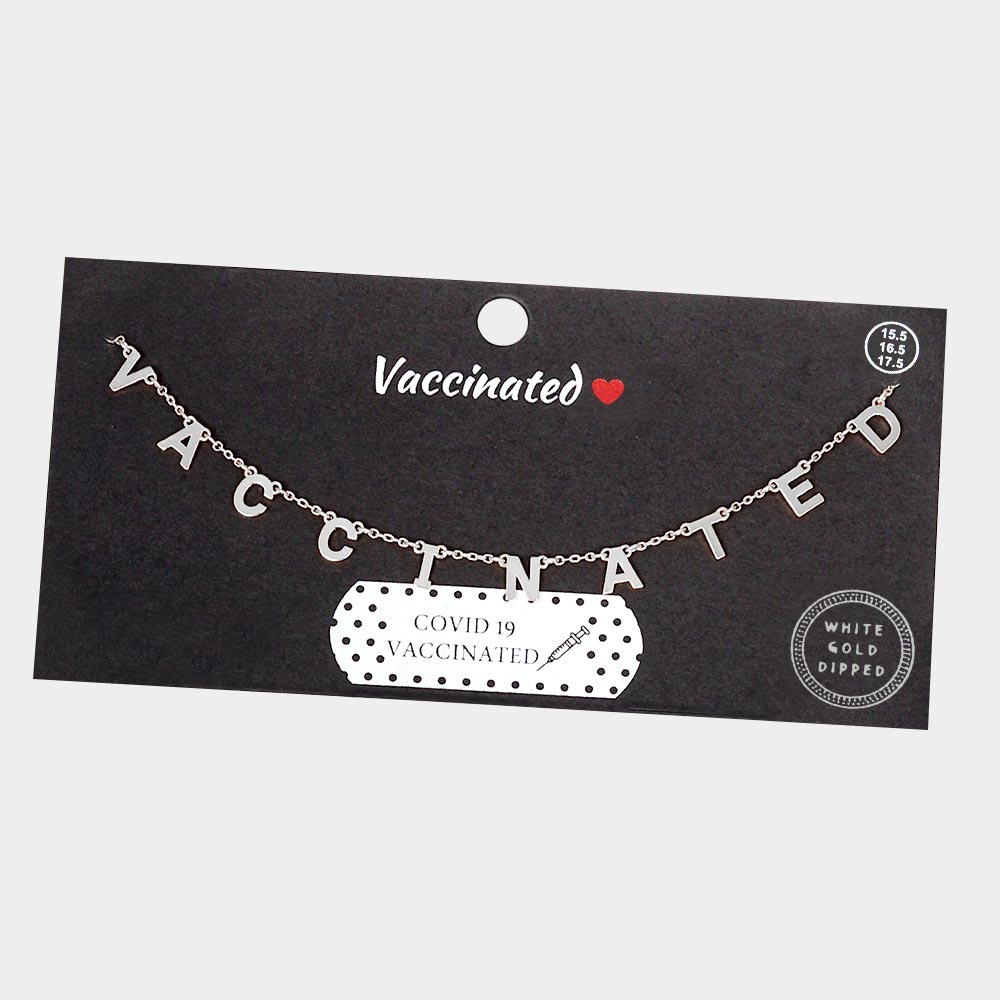 VACCINATED White Gold Dipped Message Pendant Necklace