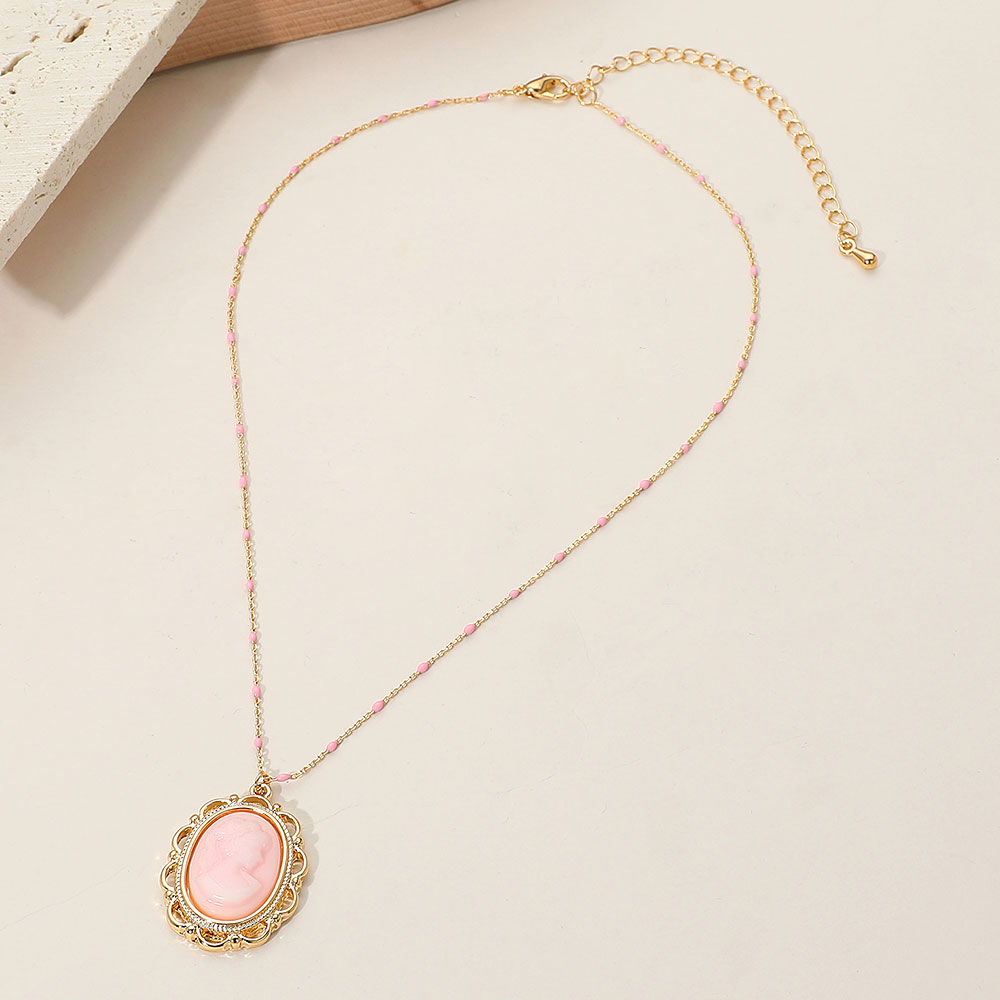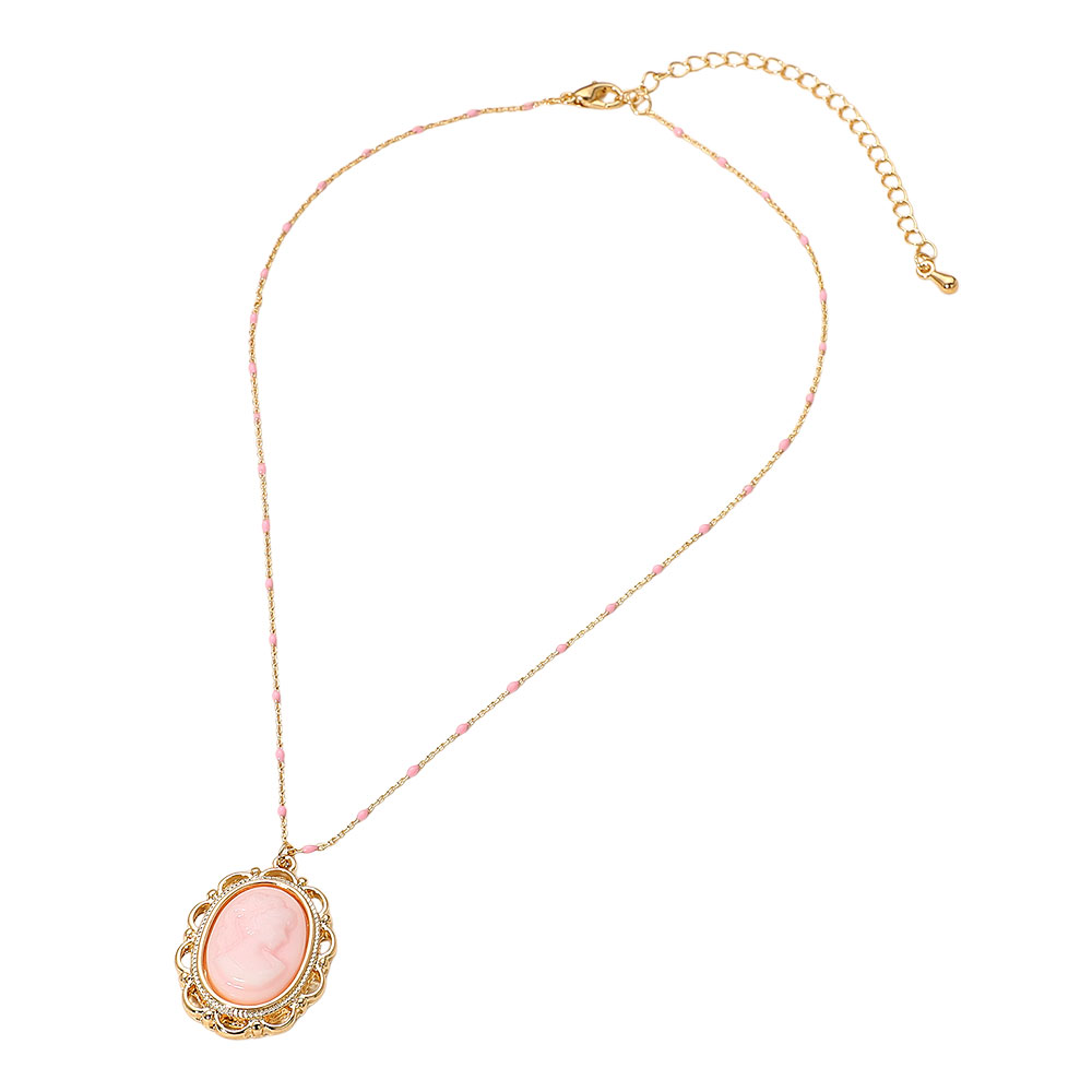 Details • Necklace Size : 14" + 3" L • Pendant Size : 0.75" X 1" • Timeless pendant necklace featuring an intricately framed cameo design. Perfect for adding a touch of vintage elegance to formal attire or gifting to those who appreciate classic, sophisticated style. • Lead and Nickel Compliant