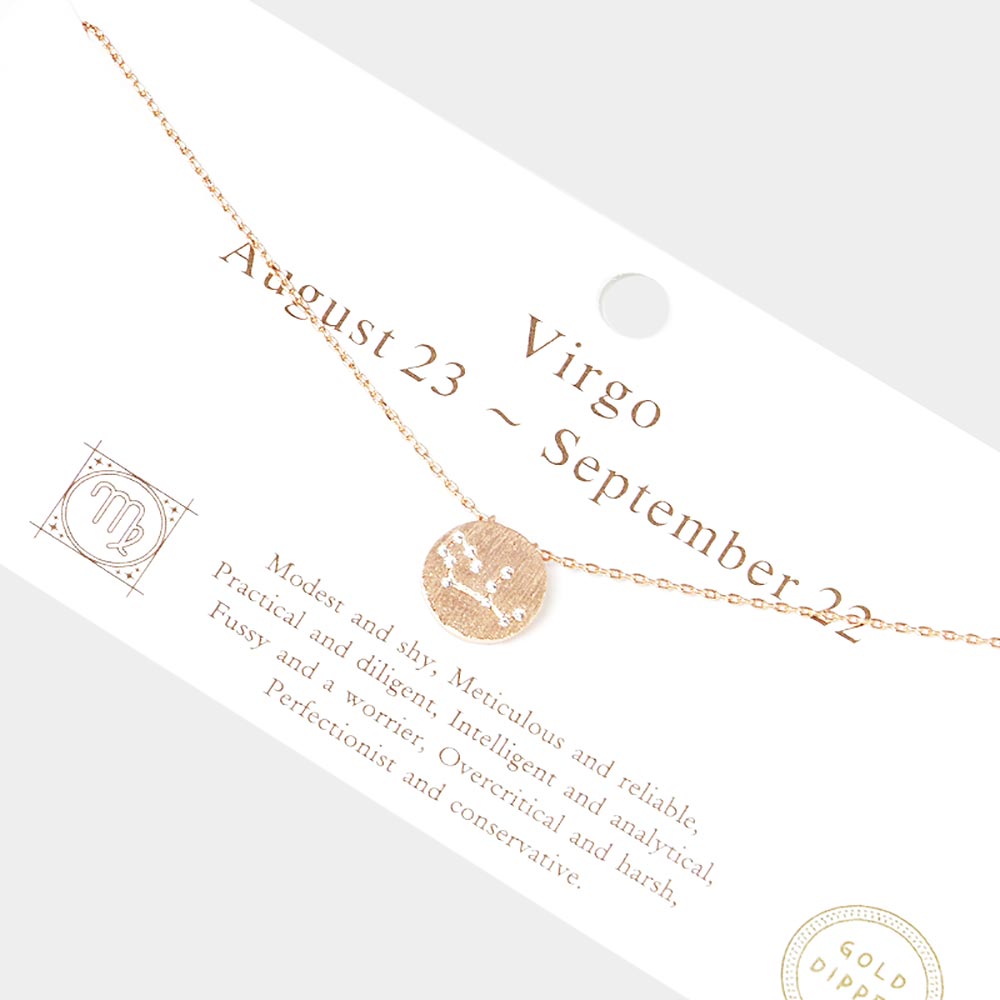Virgo Gold Dipped CZ Zodiac Sign Metal Disc Pendant Necklace