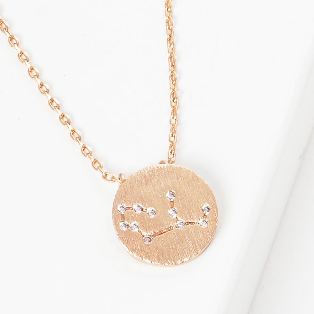 Taurus Gold Dipped CZ Zodiac Sign Metal Disc Pendant Necklace