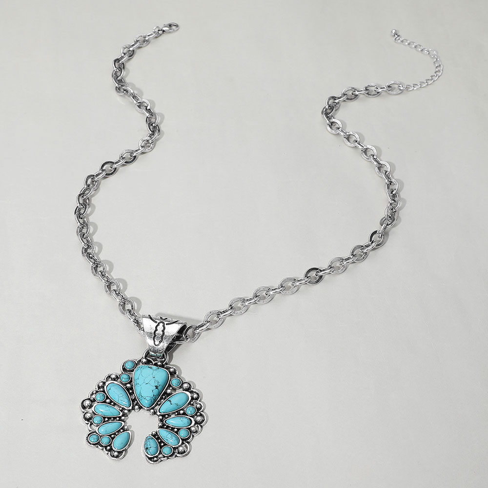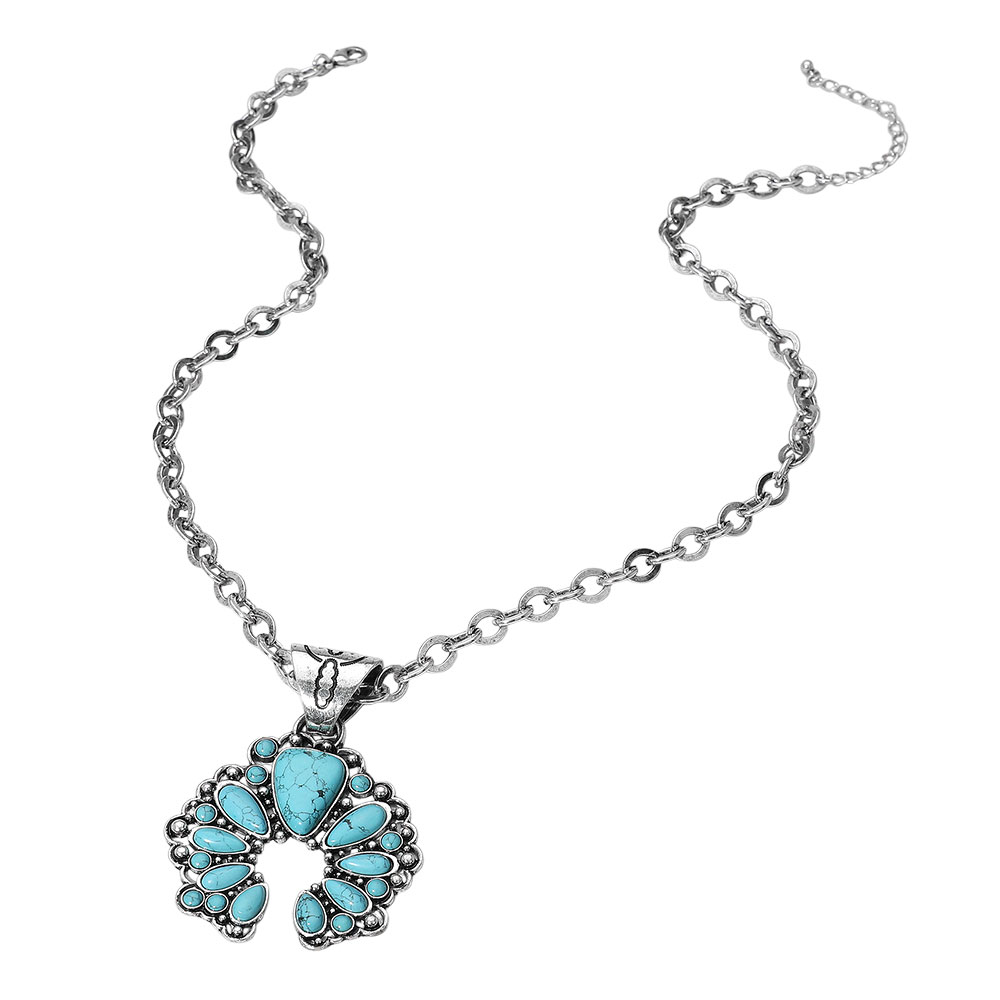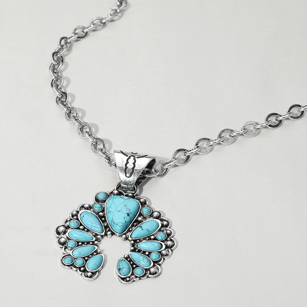 Western Teardrop Turquoise Stone Croissant Pendant Necklace
