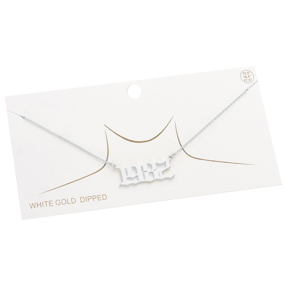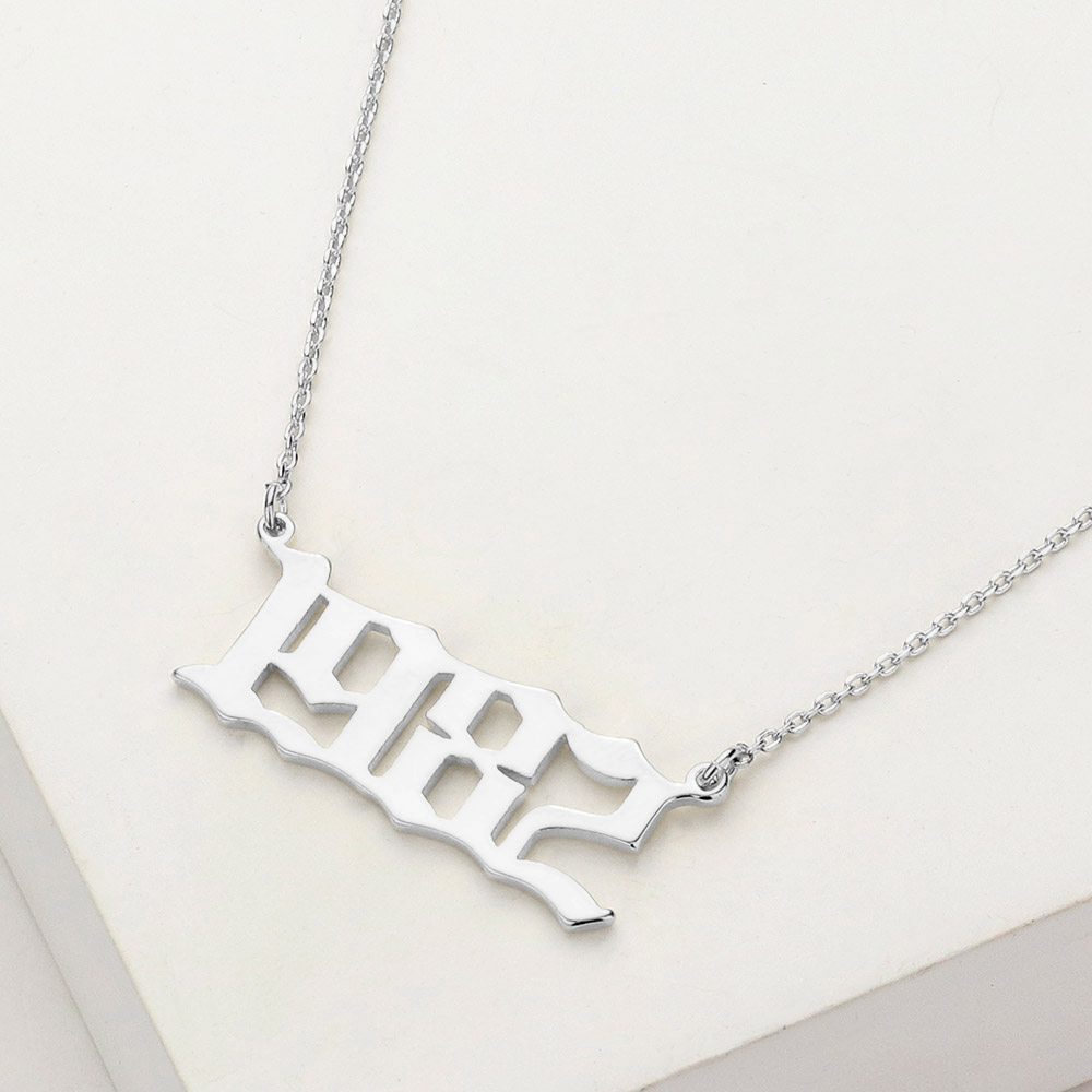 Details • Necklace Size : 15.5" + 2" L • Pendant Size : 1" X 0.4" • A bold “1982” pendant in old English font — a stylish and meaningful piece perfect for milestone birthdays or nostalgic fashion statements. • Lead and Nickel Compliant • Made In Korea • Gold Dipped