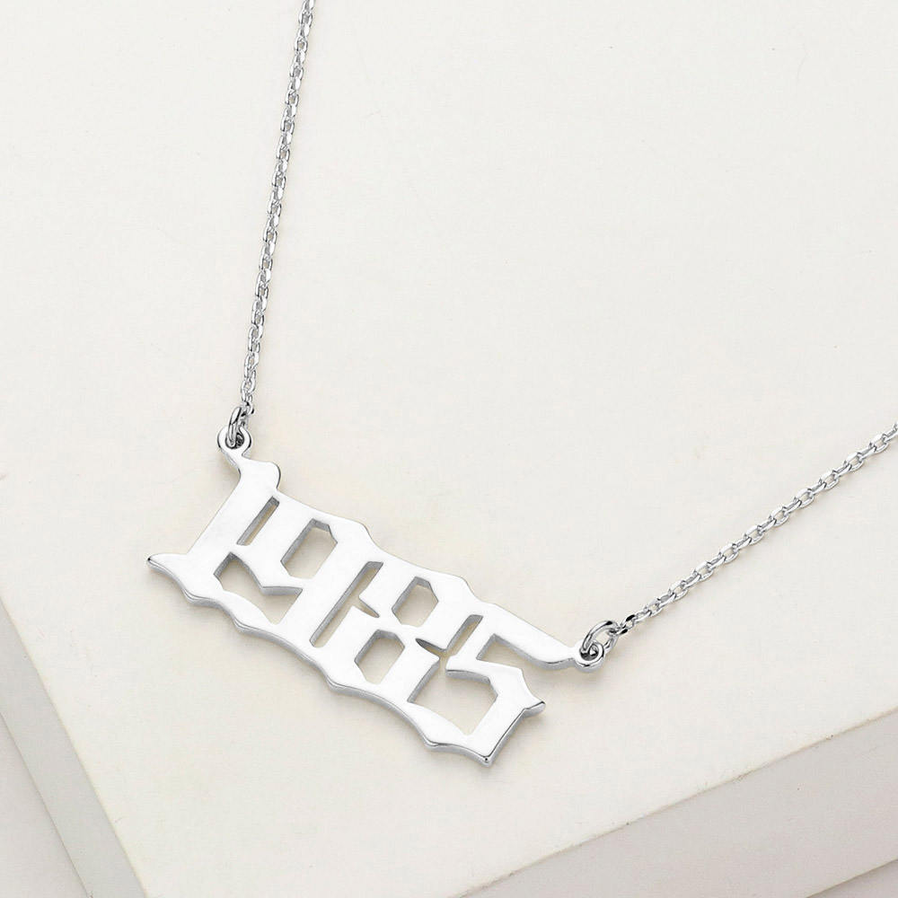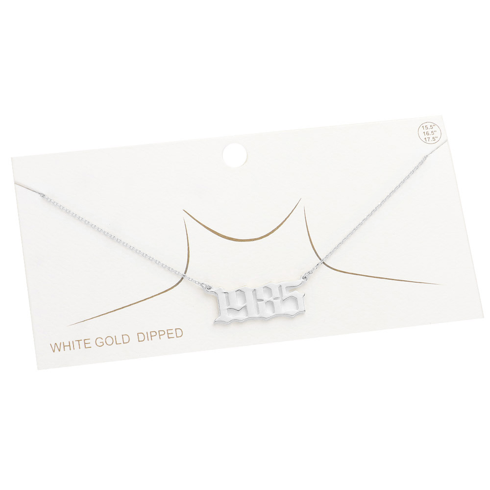 Details • Necklace Size : 15.5" + 2" L • Pendant Size : 1" X 0.4" • A bold “1985” pendant in old English font — a stylish and meaningful piece perfect for milestone birthdays or nostalgic fashion statements. • Lead and Nickel Compliant • Made In Korea • Gold Dipped