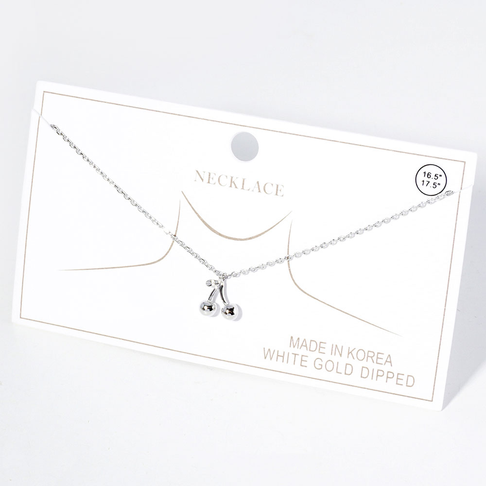 Details • Necklace Size : 16.5" + 1" L • Pendant Size : 0.4" X 0.4" • Delicate necklace featuring a petite cherry charm on a fine chain. A playful and stylish accessory that adds a sweet touch to casual or layered looks. Compact design makes it ideal for everyday wear. • Gold Dipped • Lead and Nickel Compliant • Made In Korea