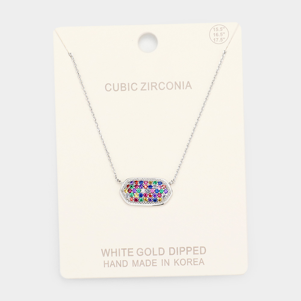 White Gold Dipped Colorful CZ Pave Pendant Necklace