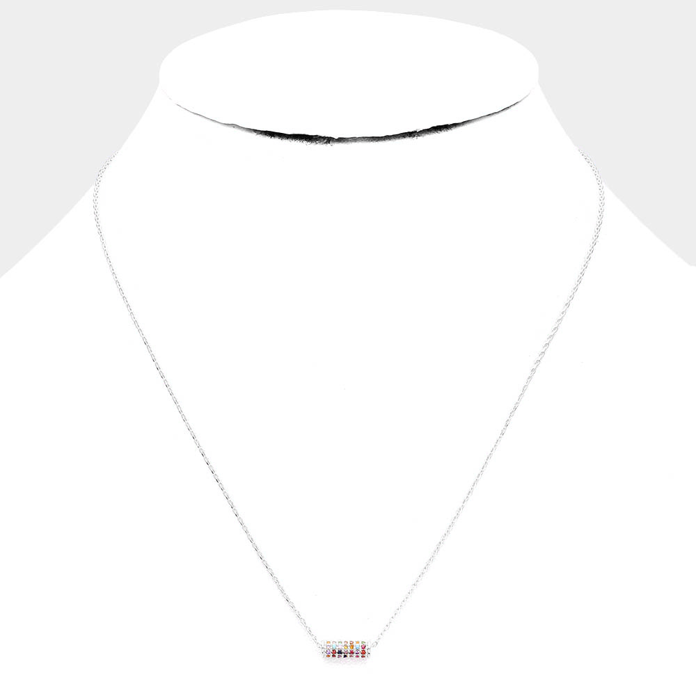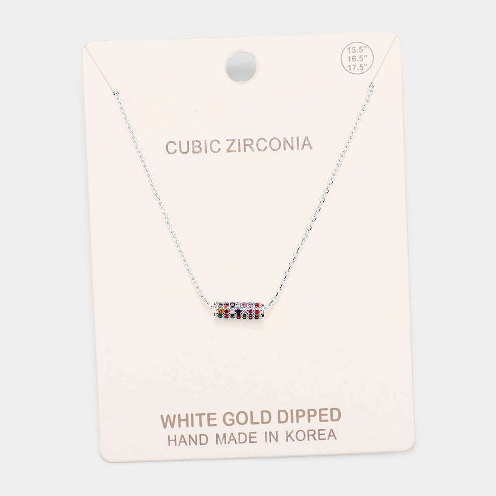 White Gold Dipped Cubic Zirconia Bar Pendant Necklace
