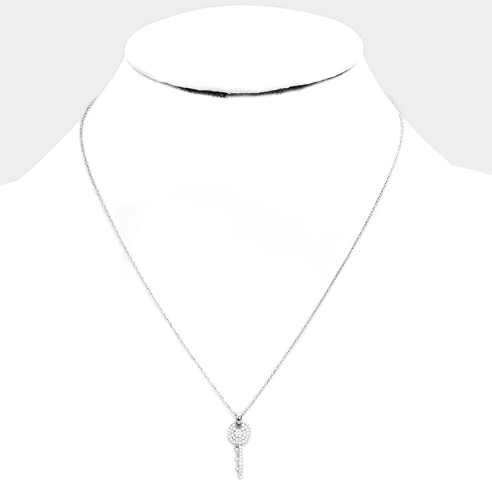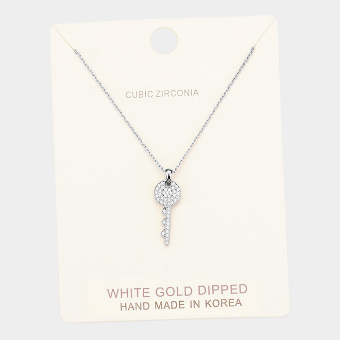 White Gold Dipped Cubic Zirconia Key Pendant Necklace