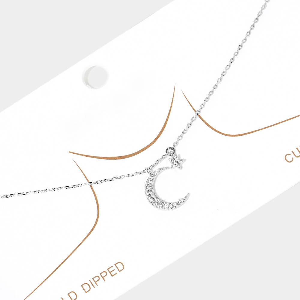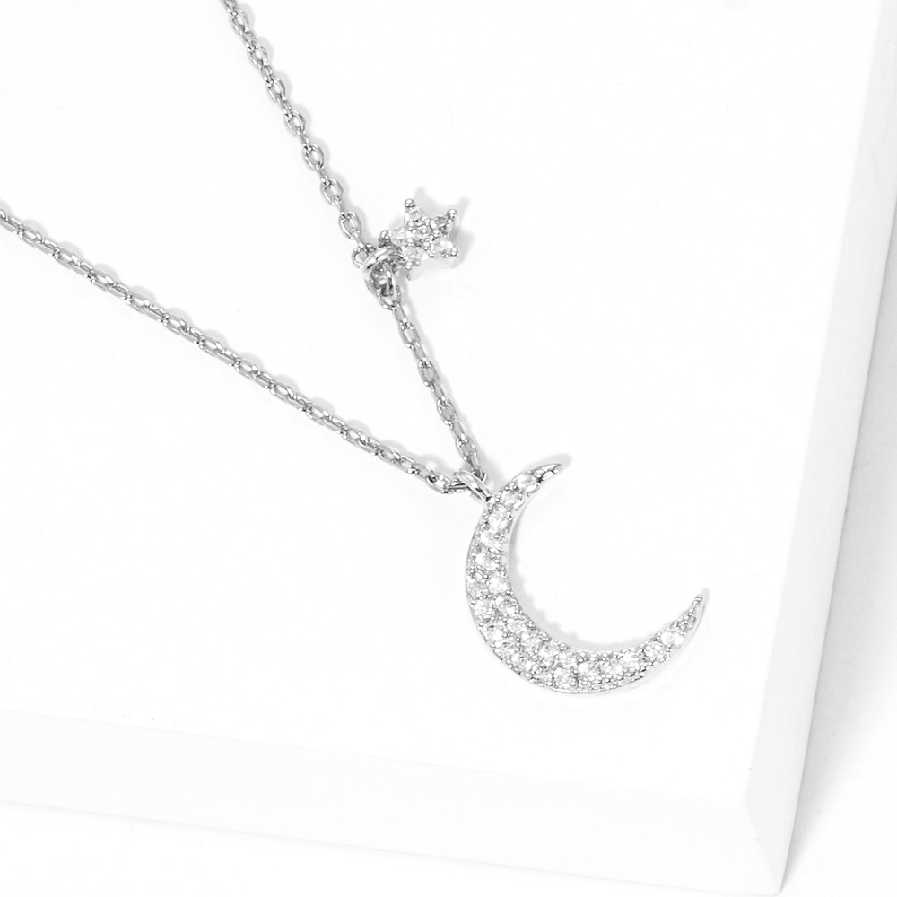 SECRET BOX_Sterling Silver Dipped CZ Moon Pendant Necklace
