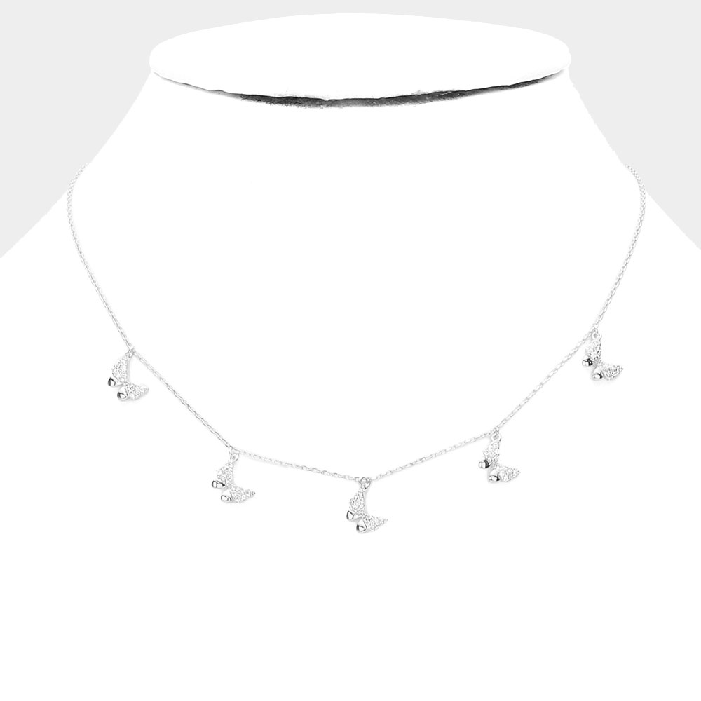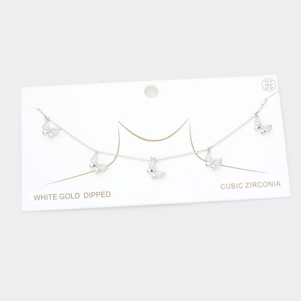 White Gold Dipped CZ Embellished Butterfly Pendant Necklace