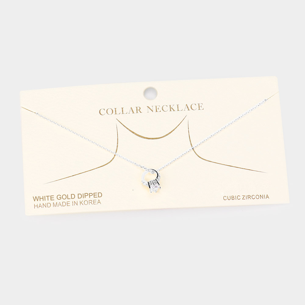 White Gold Dipped CZ Engagement Ring Pendant Necklace
