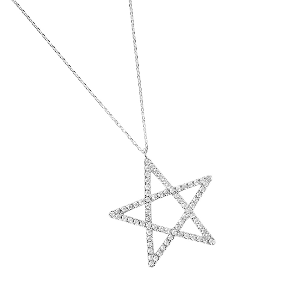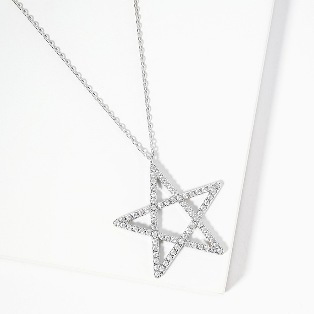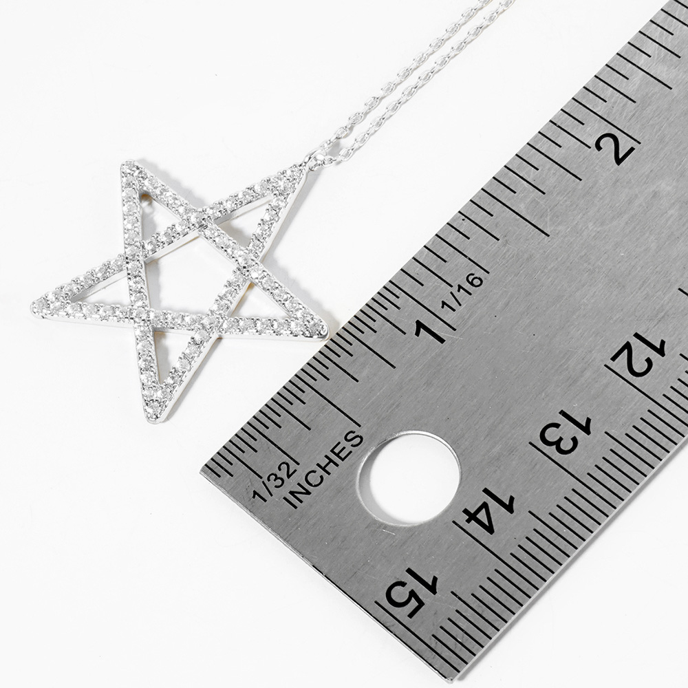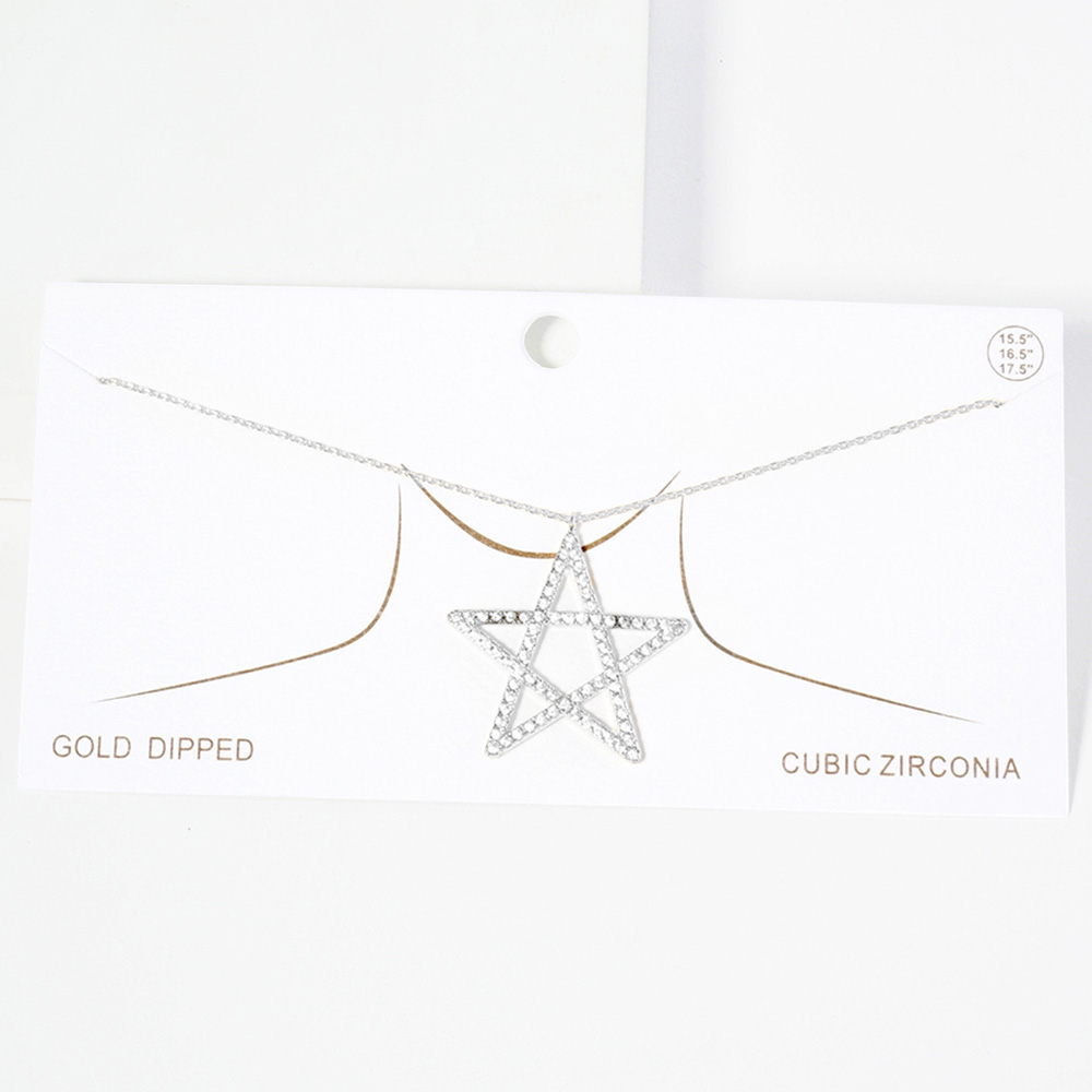 White Gold Dipped CZ Pave Star Pendant Necklace