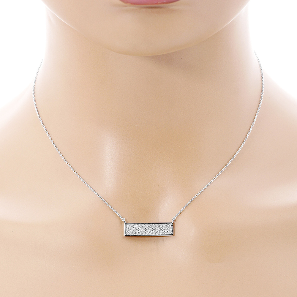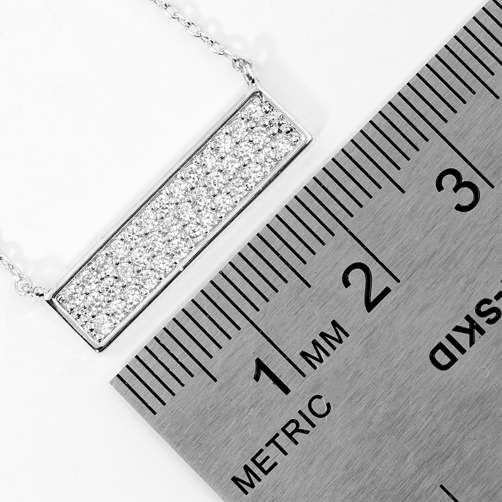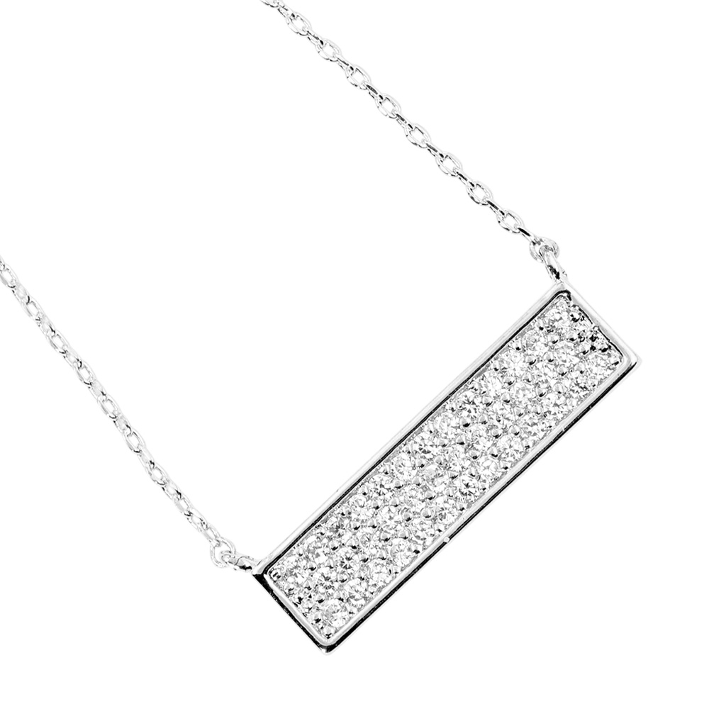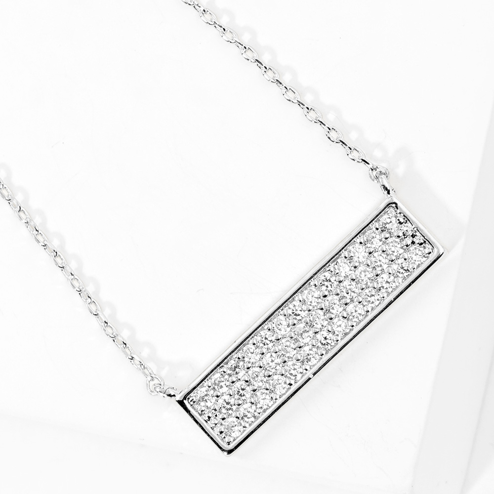 White Gold Dipped CZ Paved Bar Pendant Necklace