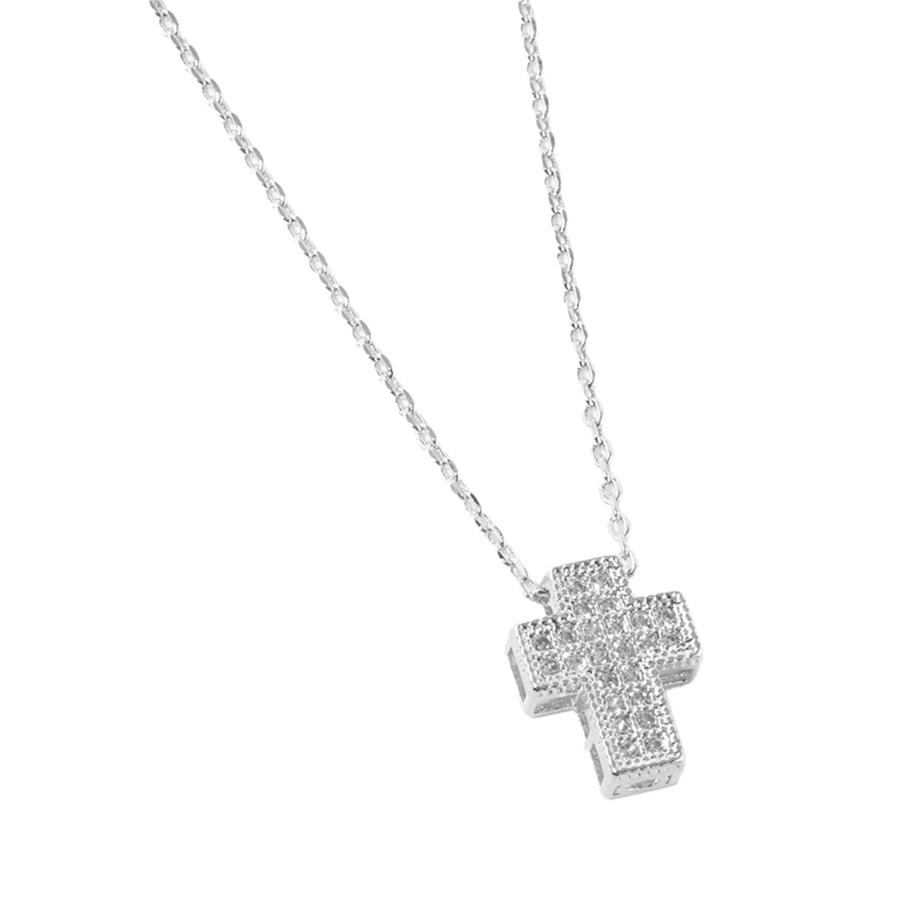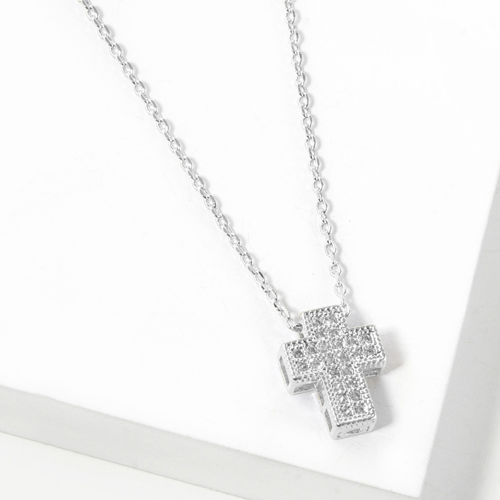 • Classic cross pendant necklace adorned with sparkling pave accents on a delicate chain. A meaningful and stylish piece that adds timeless elegance, perfect for everyday wear or special gifting occasions.