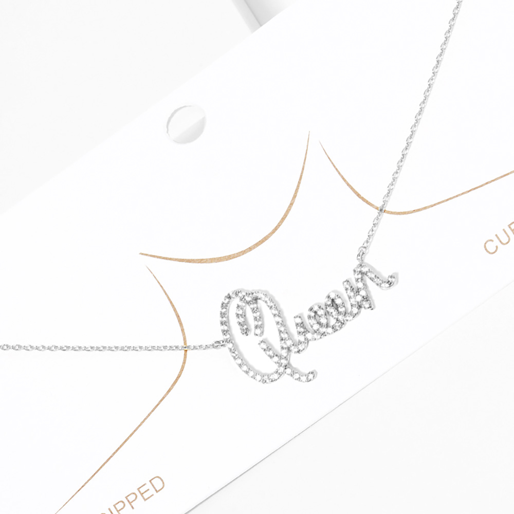 White Gold Dipped CZ Queen Message Pendant Necklace