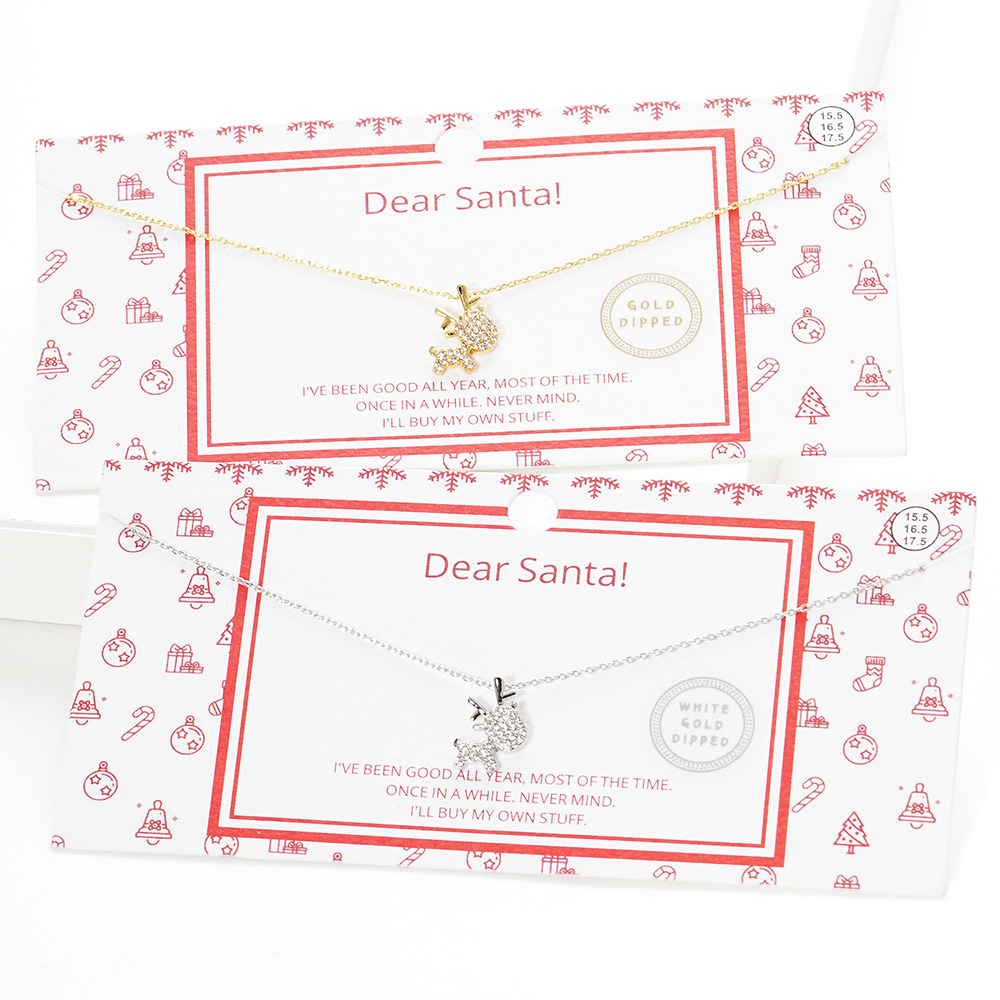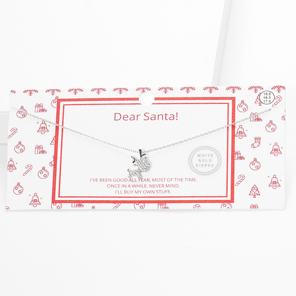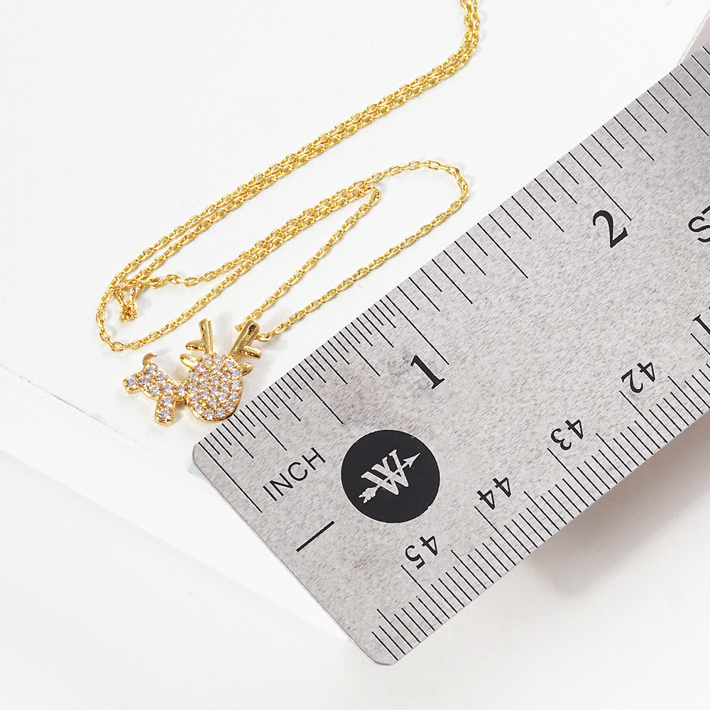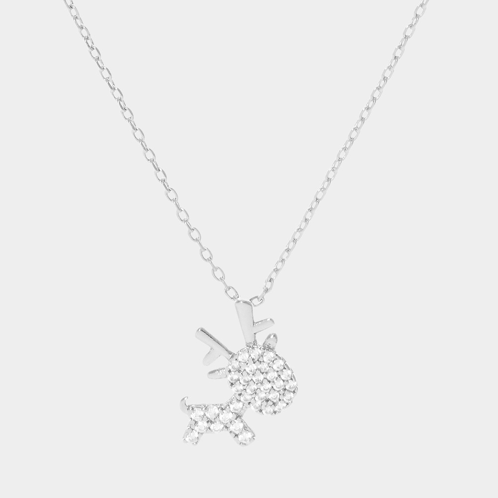 White Gold Dipped CZ Reindeer Pendant Necklace