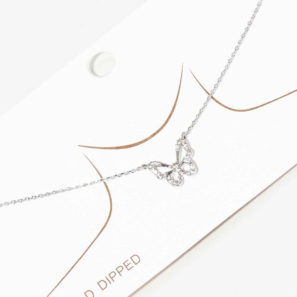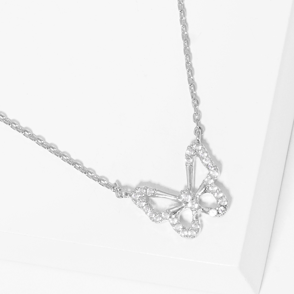 White Gold Dipped CZ Stone Paved Butterfly Pendant Necklace