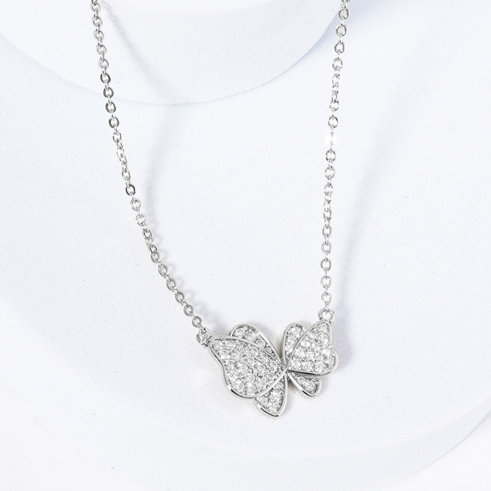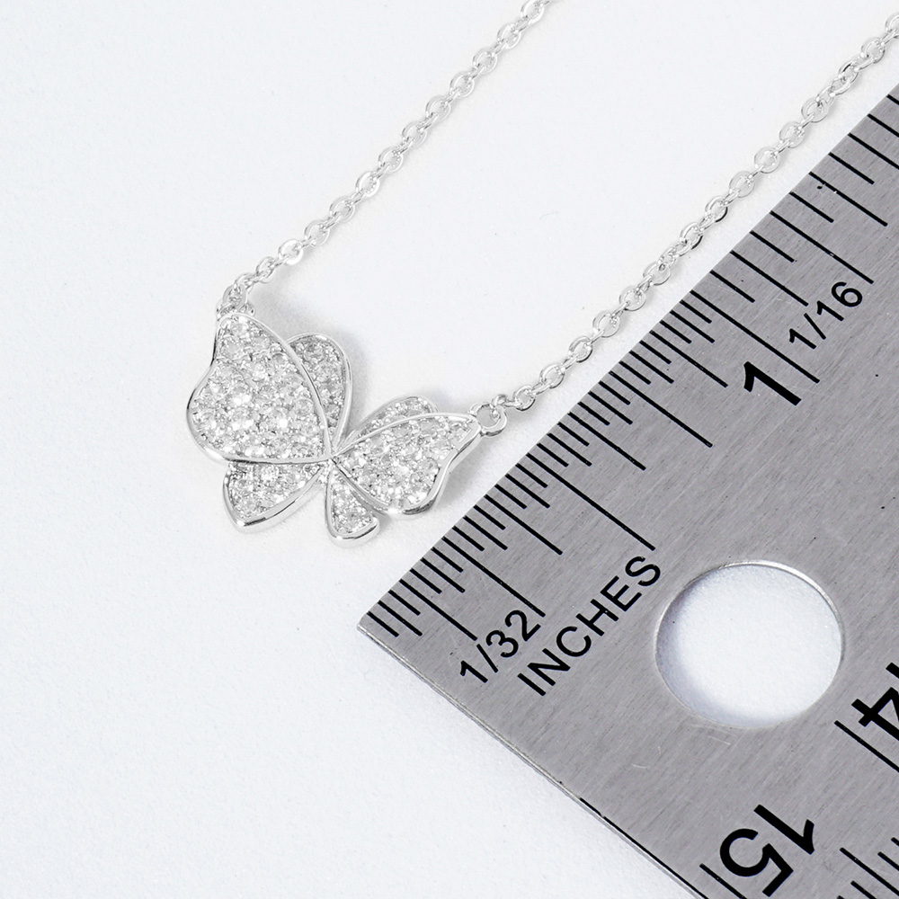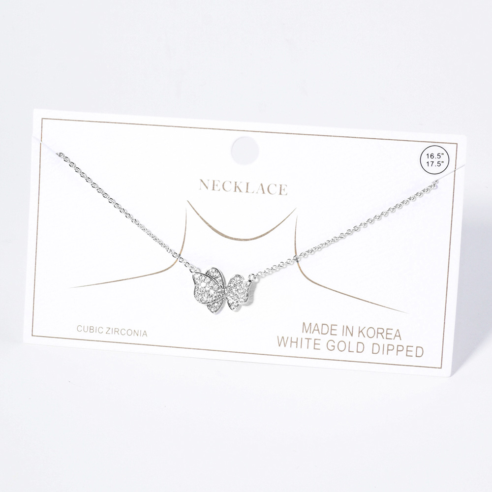 White Gold Dipped CZ Stone Paved Butterfly Pendant Necklace
