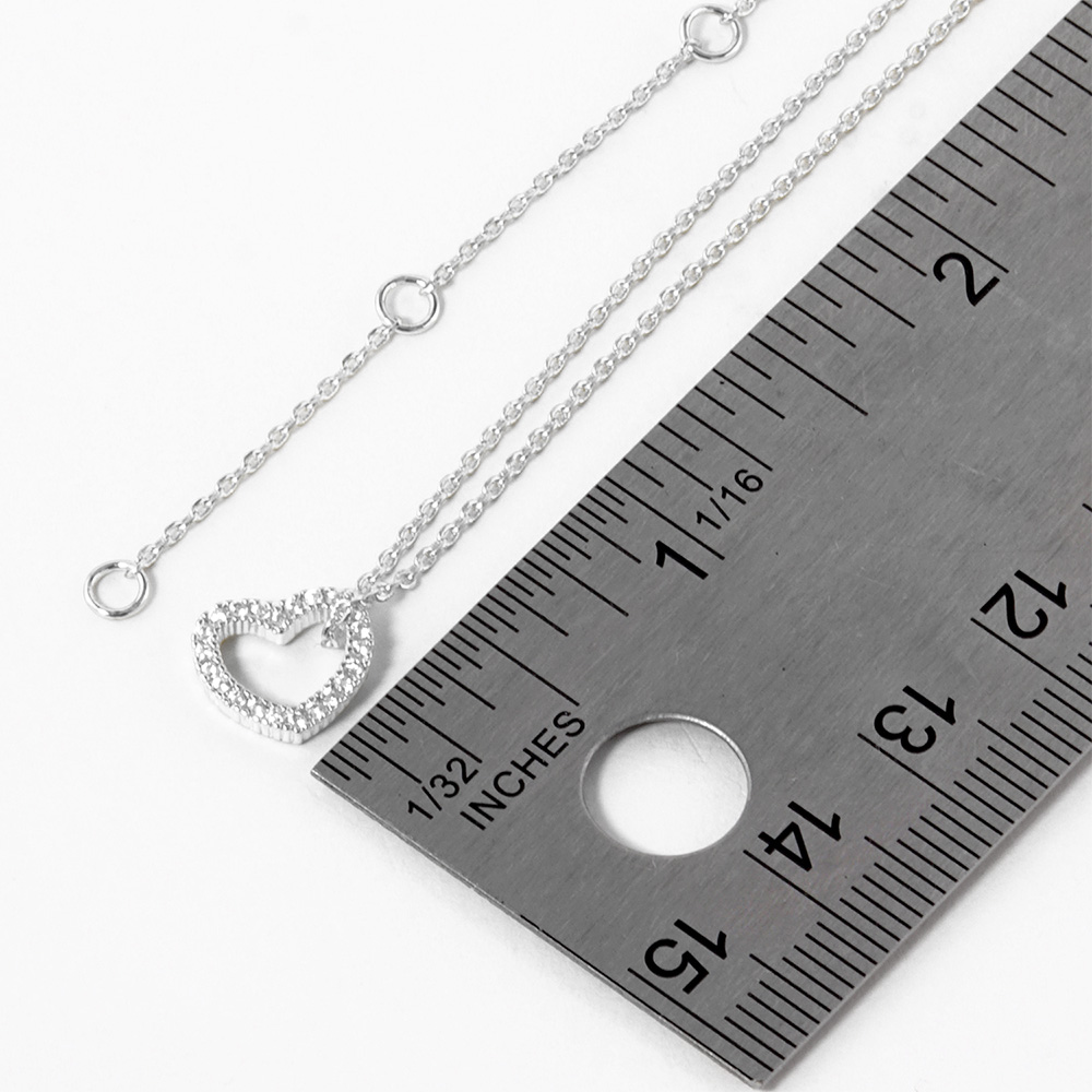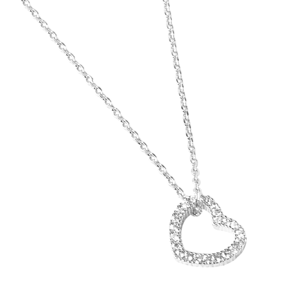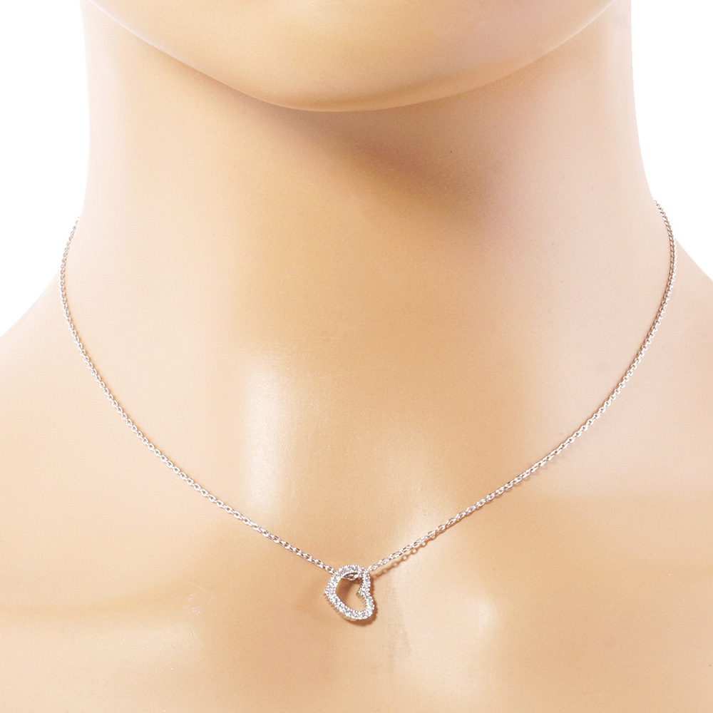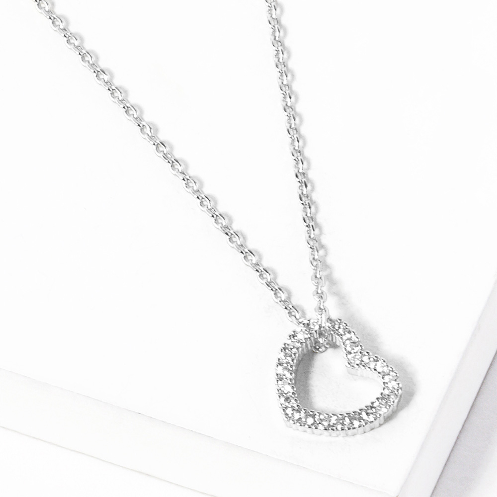 White Gold Dipped CZ Stone Paved Open Heart Pendant Necklace