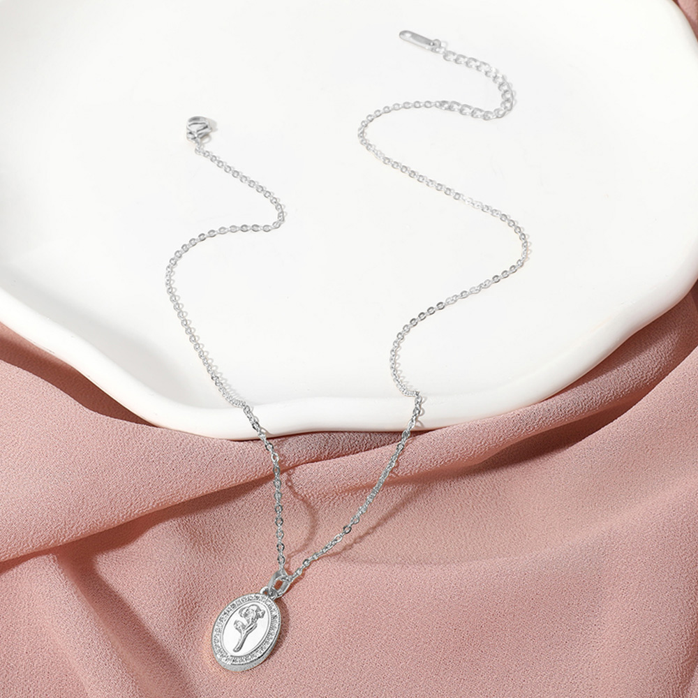 Stainless Steel Mother Of Pearl Quatrefoil Pendant Necklace