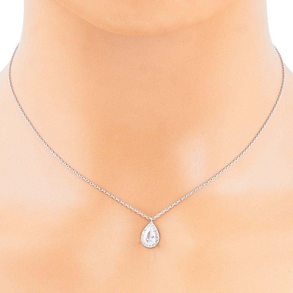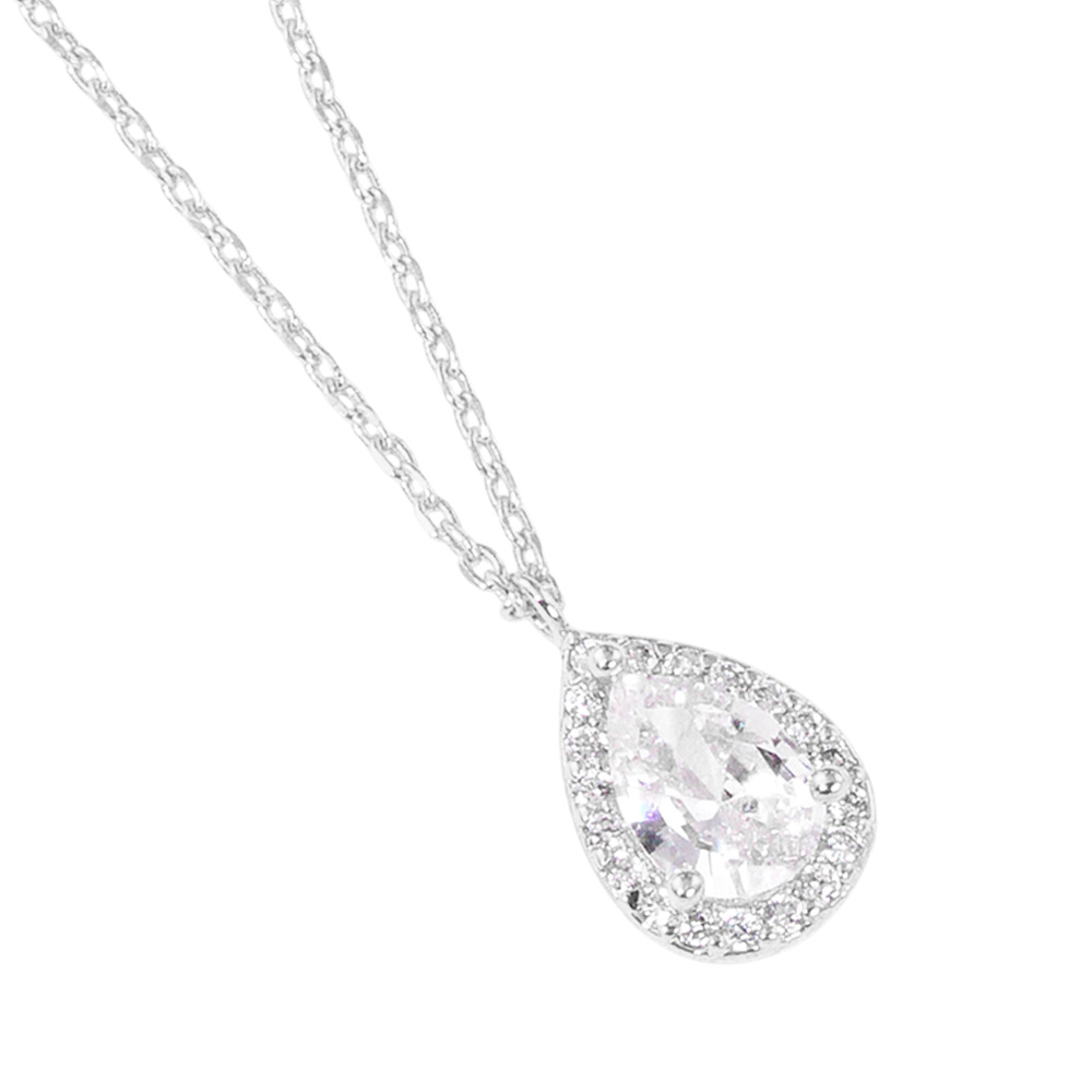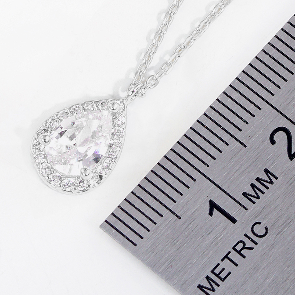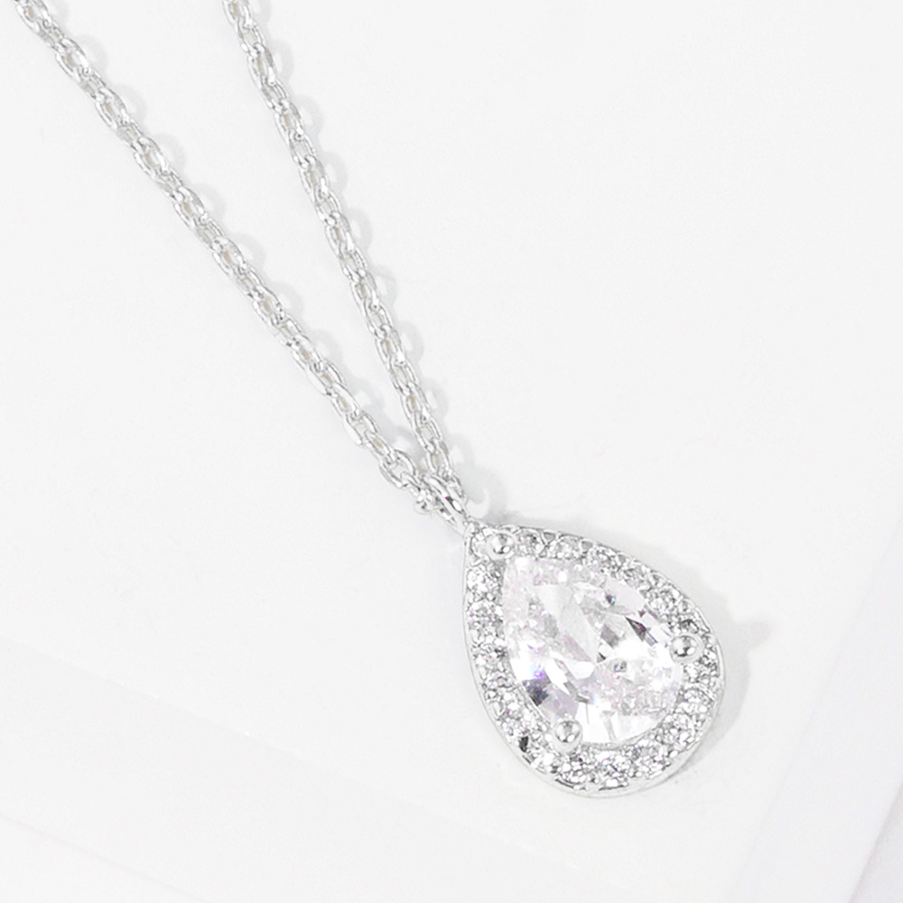 White Gold Dipped CZ Teardrop Pendant Necklace