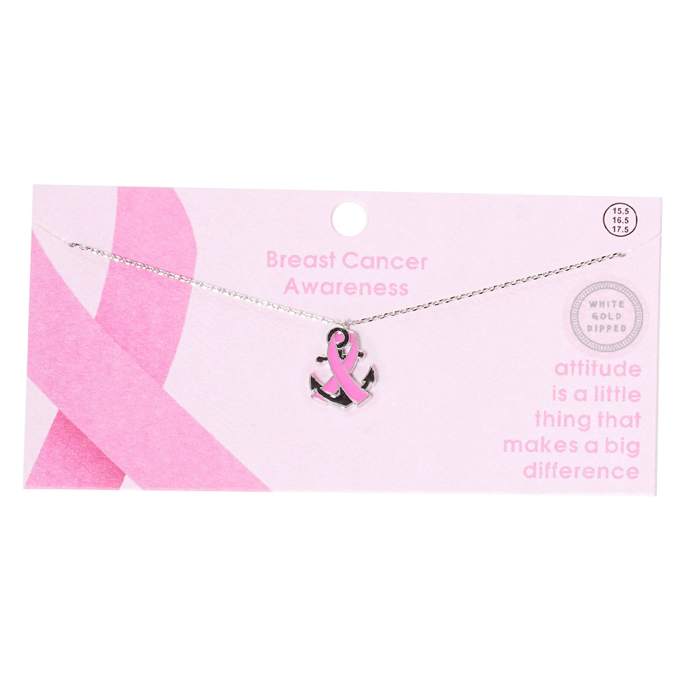 Details • Necklace Size : 15.5" + 2" L • Pendant Size : 0.6" X 0.75" • Show strength and support with this pink ribbon anchor necklace, combining the anchor’s symbol of stability with the ribbon’s message of hope and awareness. A meaningful piece that honors resilience, making it a thoughtful gift or keepsake for courage and love. • Lead and Nickel Compliant • Made In Korea • Gold Dipped