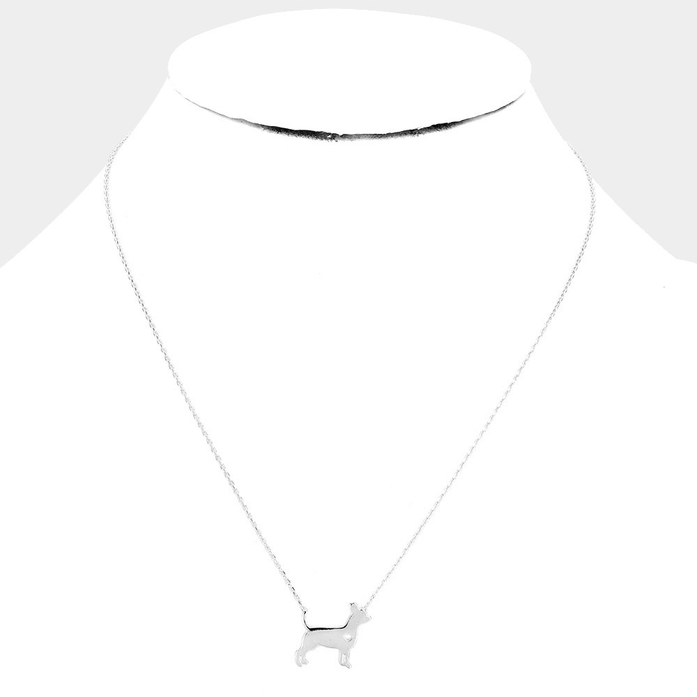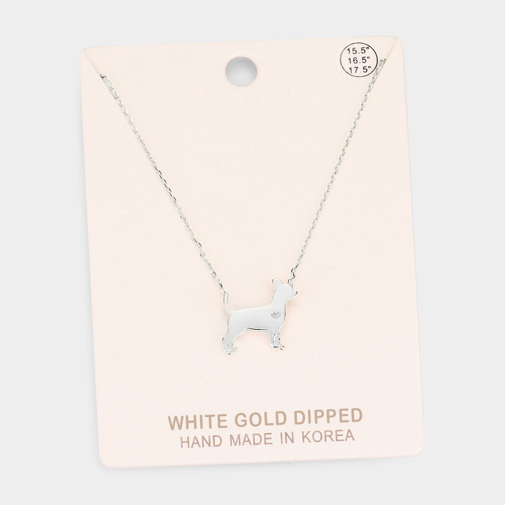 White Gold Dipped French Boston Terrier Dog Heart Pendant Necklace