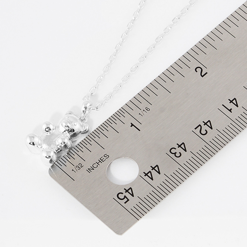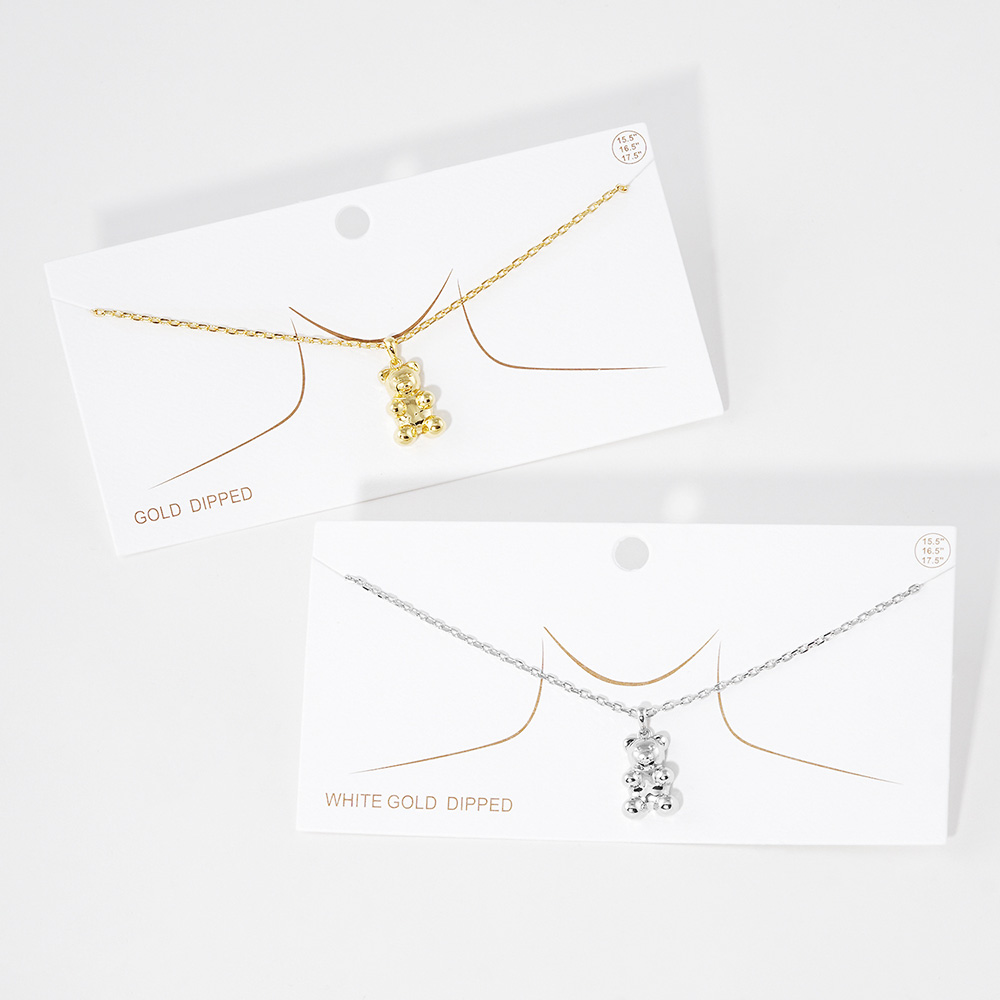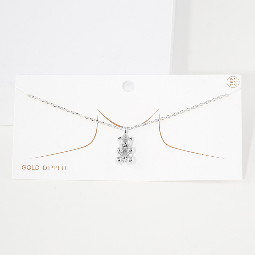 White Gold Dipped CZ Embellished Double Metal Bear Pendant Necklace