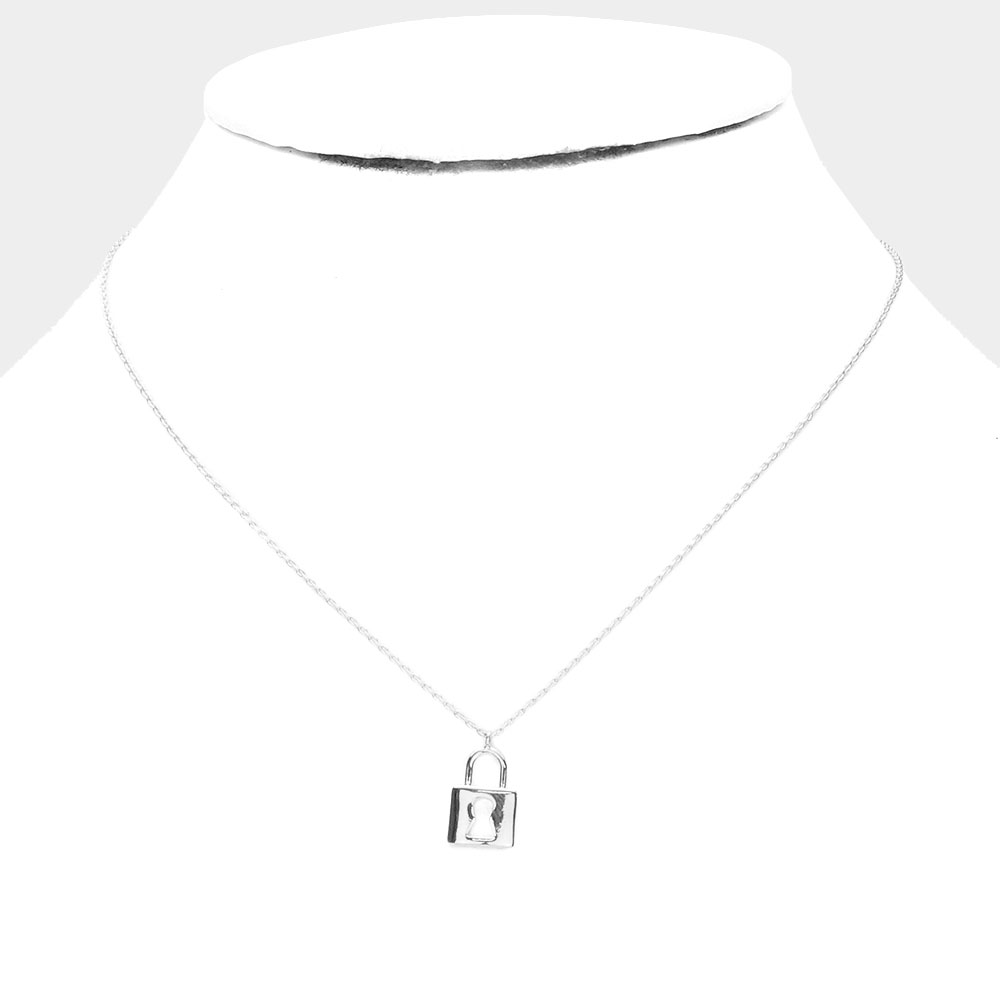 -L- Brass Metal Initial Monogram Lock Pendant Necklace