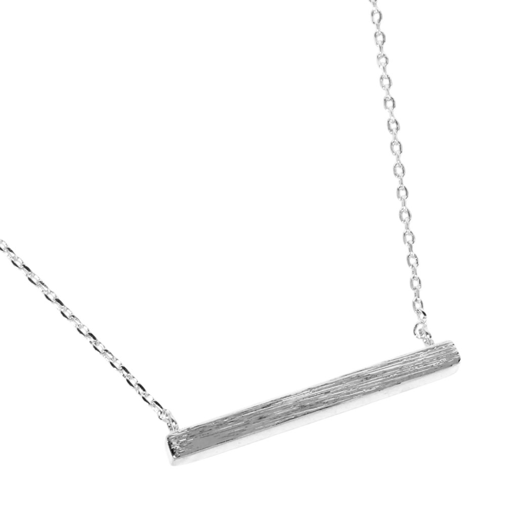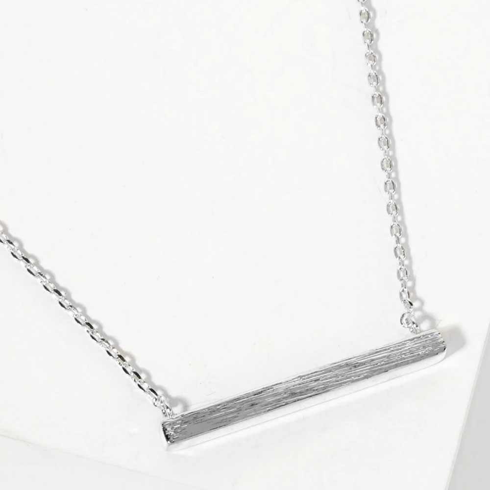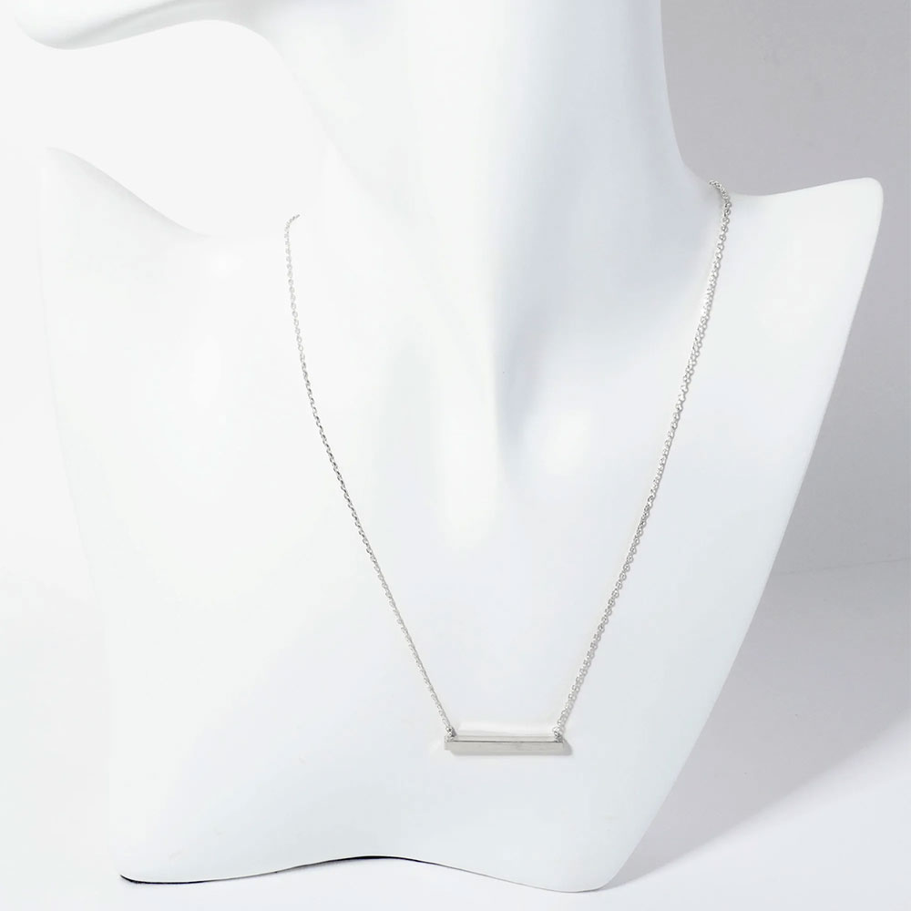 White Gold Dipped Rectangle Bar Pendant Necklace