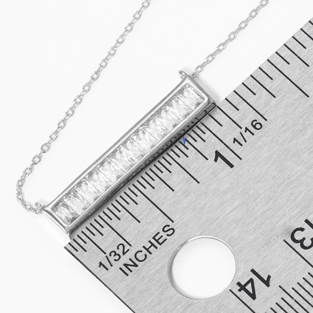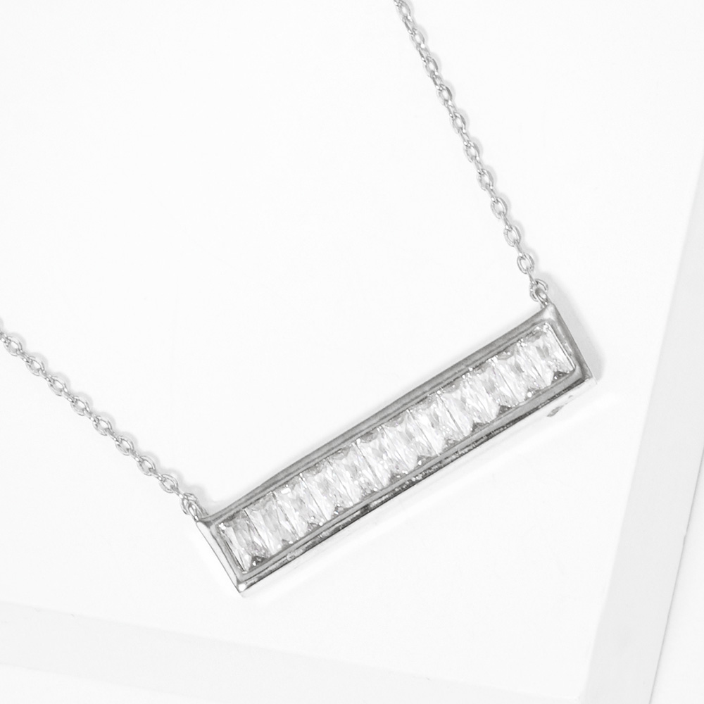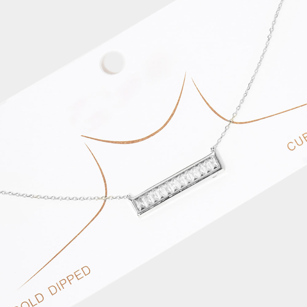 White Gold Dipped Rectangle Stone Cluster Bar Pendant Necklace