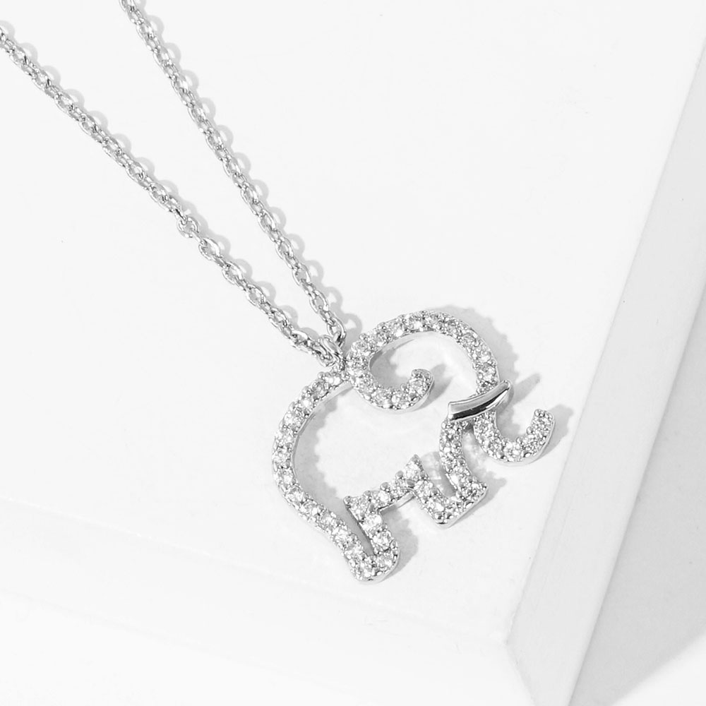 White Gold Dipped Rhinestone Elephant Pendant Necklace
