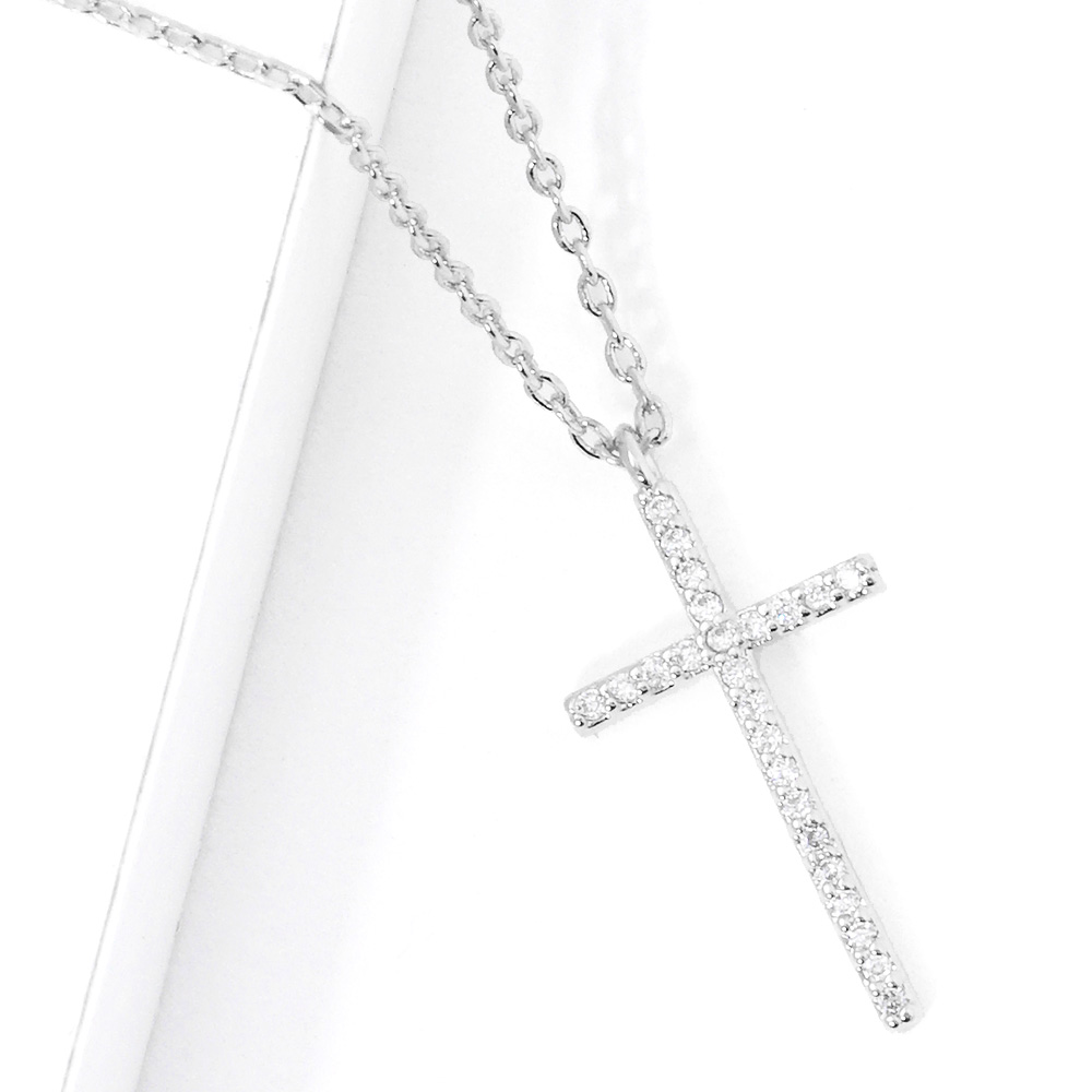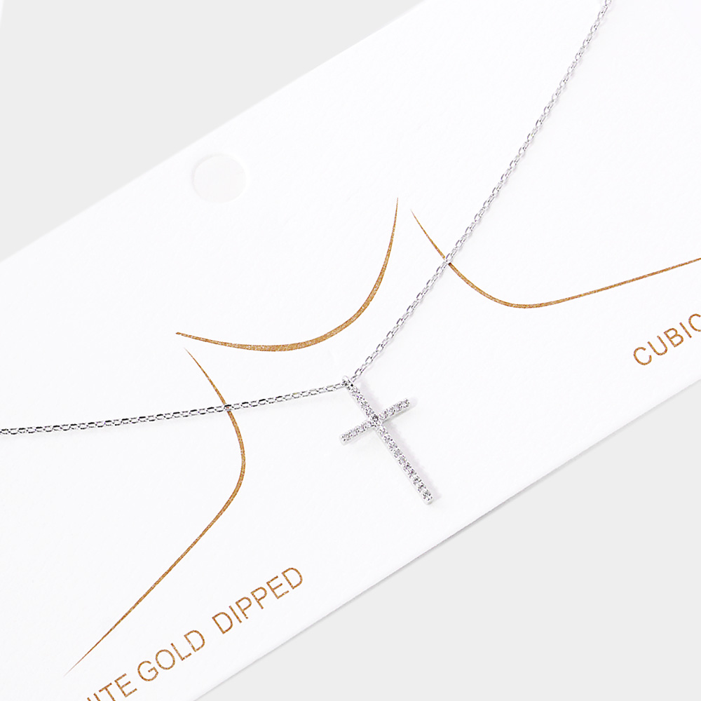 White Gold Dipped Rhinestone Embellished Cross Pendant Necklace