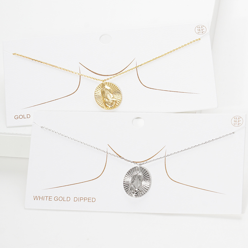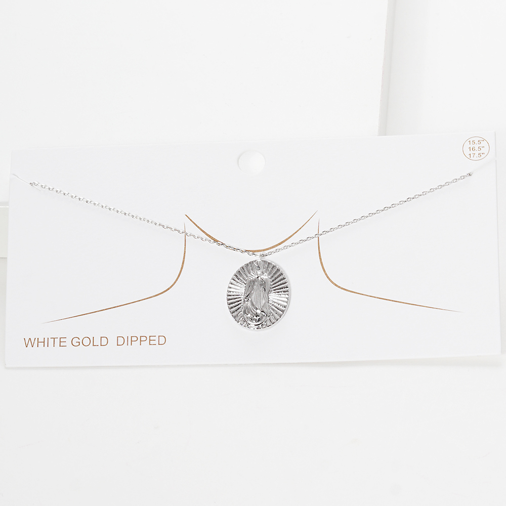 White Gold Dipped Virgin Mary Metal Oval Pendant Necklace
