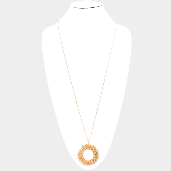 Wire Wrapped Beaded Circle Pendant Long Necklace