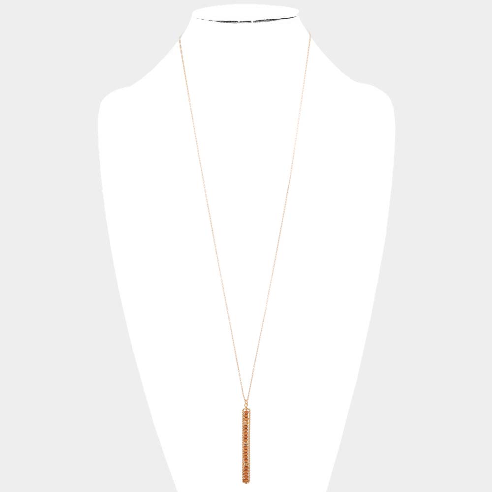 Wood Beaded Open Rectangle Pendant Long Necklace