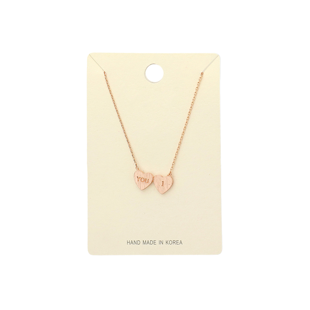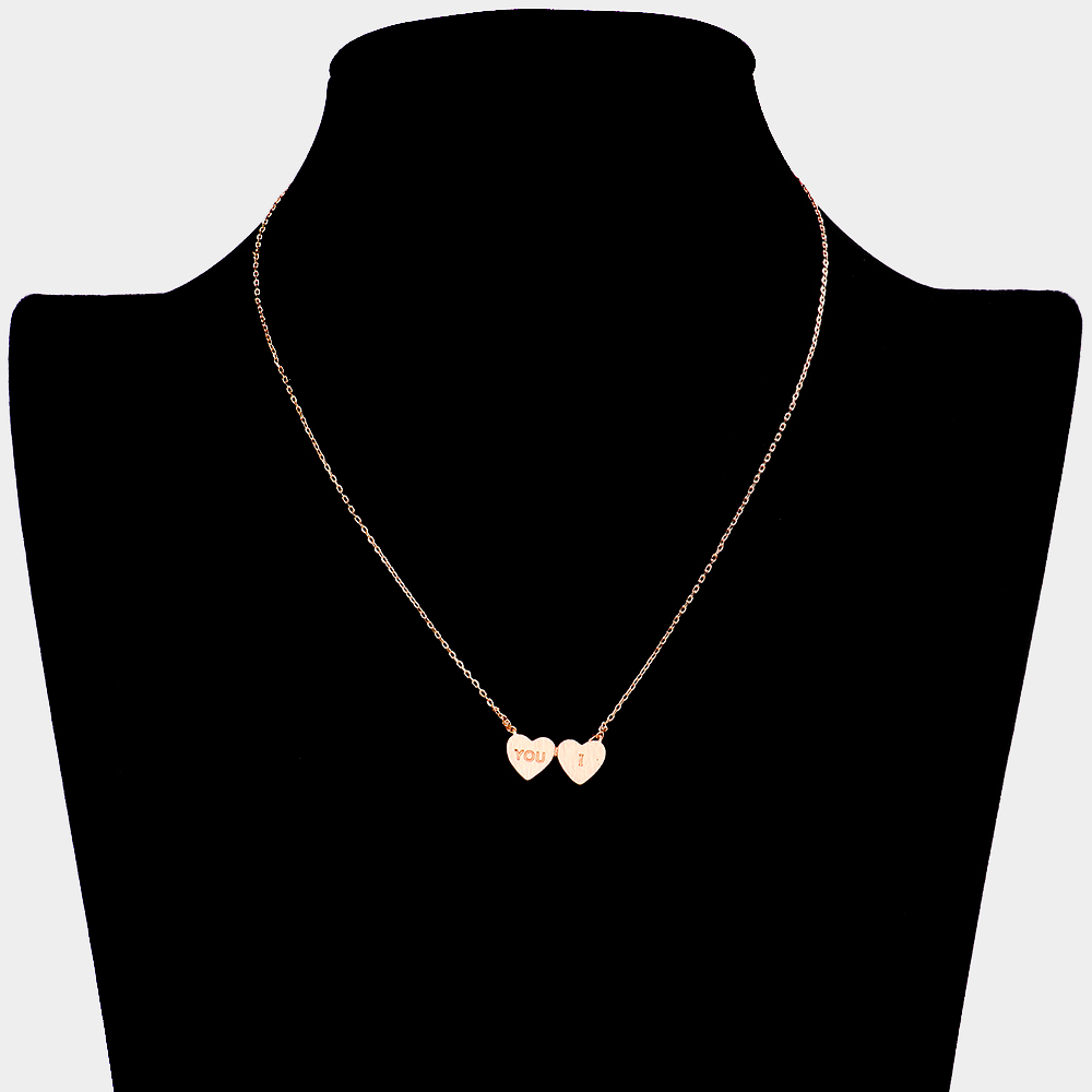 You I Message Metal Double Heart Pendant Necklace