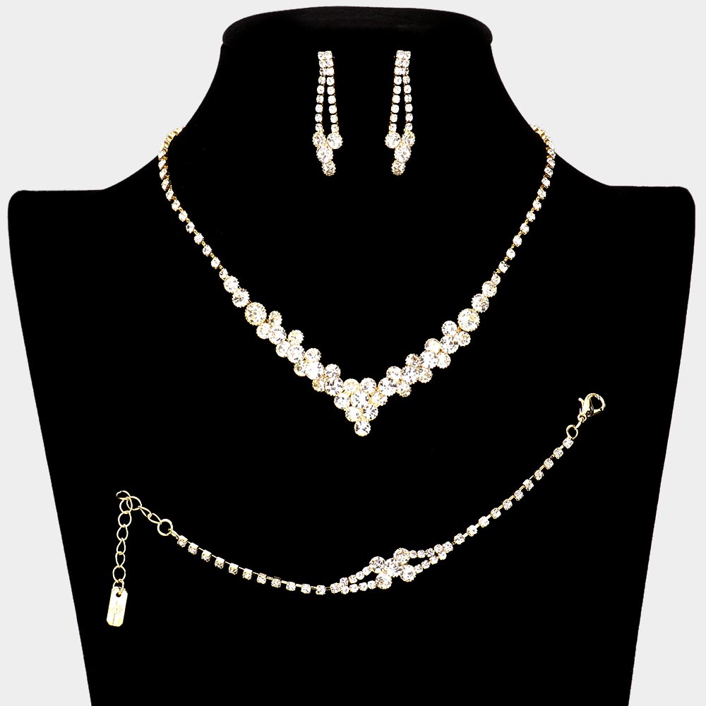 3PCS - Crystal rhinestone bubble necklace jewelry set