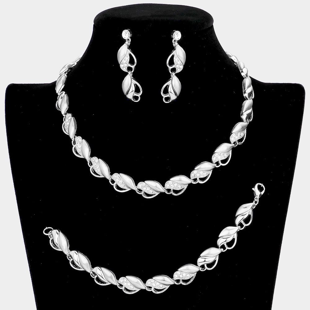 3PCS - Crystal Rhinestone Marquise Necklace Set