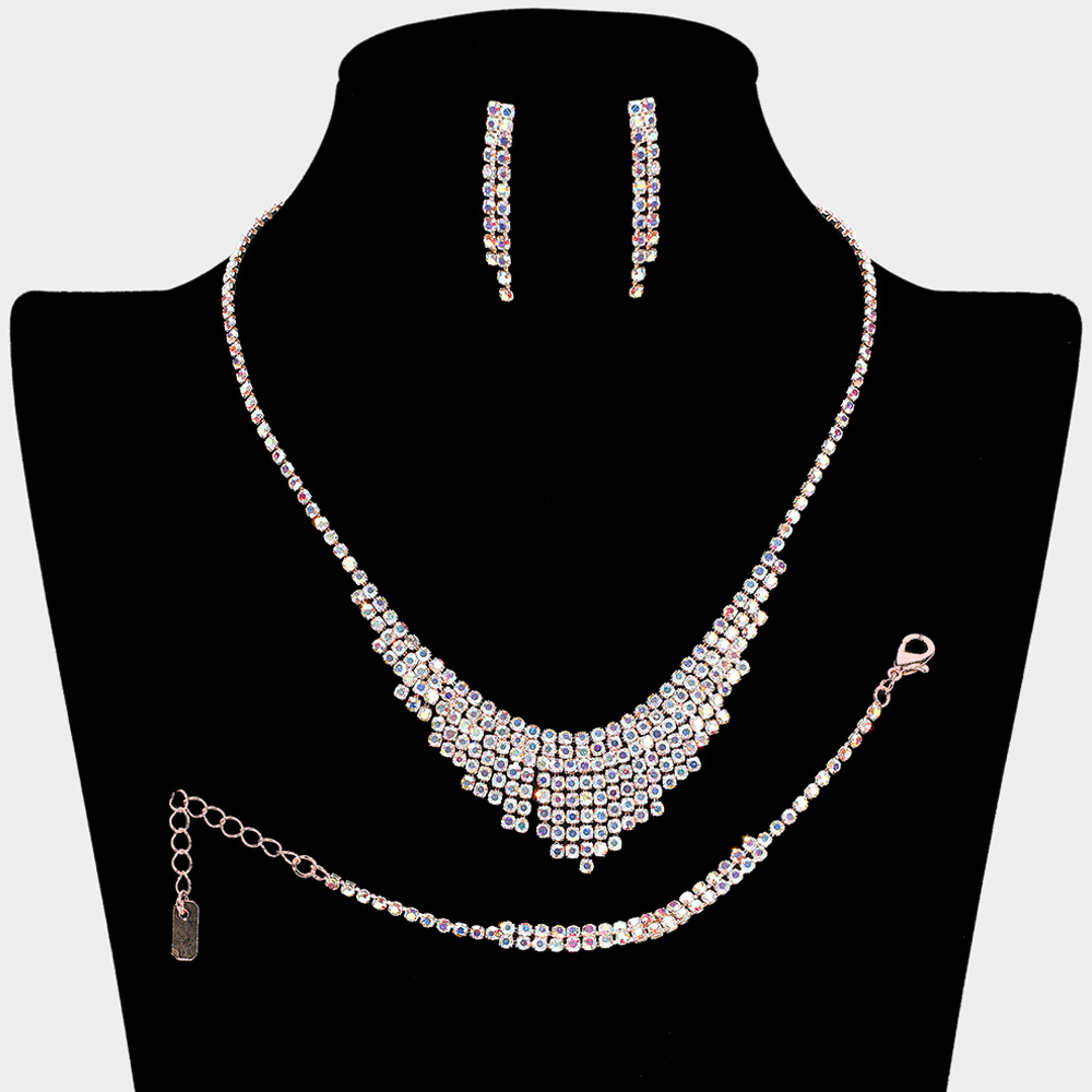 3PCS - Crystal Rhinestone Pave Fringe Necklace Jewelry Set