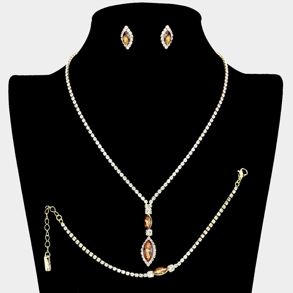 3PCS Marquise Stone Accented Rhinestone Pave Necklace Jewelry Set