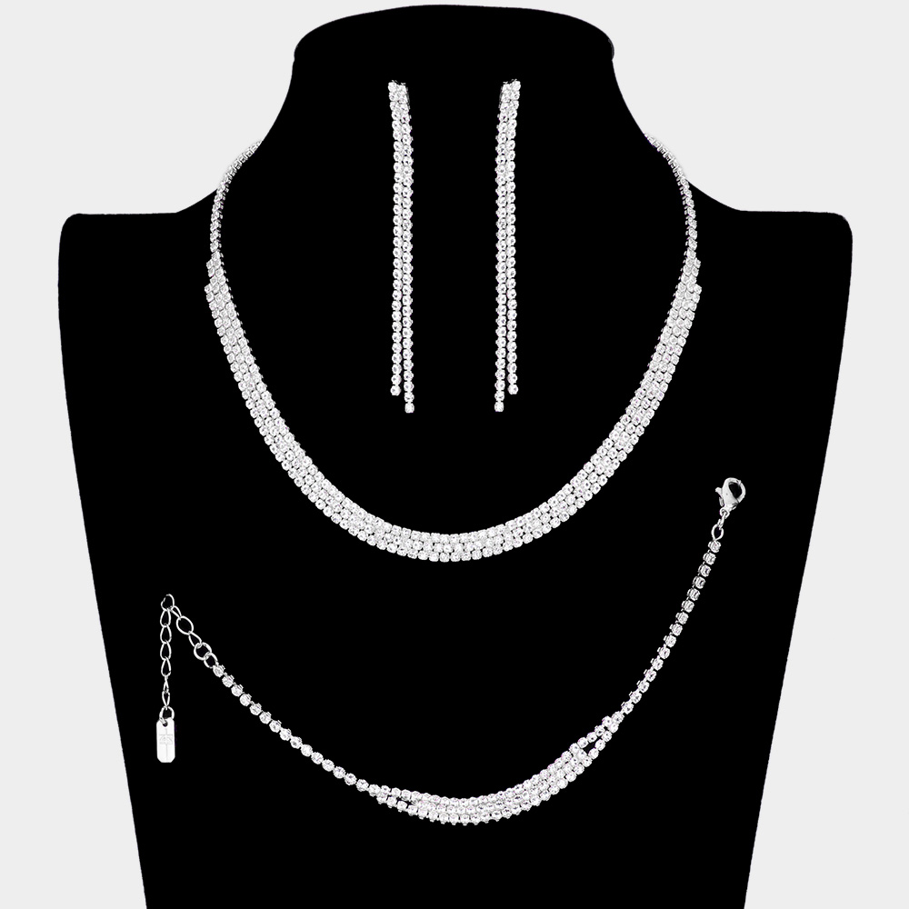 3PCS - Rhinestone Crystal Fringe Necklace Jewelry Set