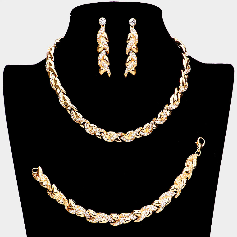 3PCS - Rhinestone Embellished Braided Necklace Jewelry Set