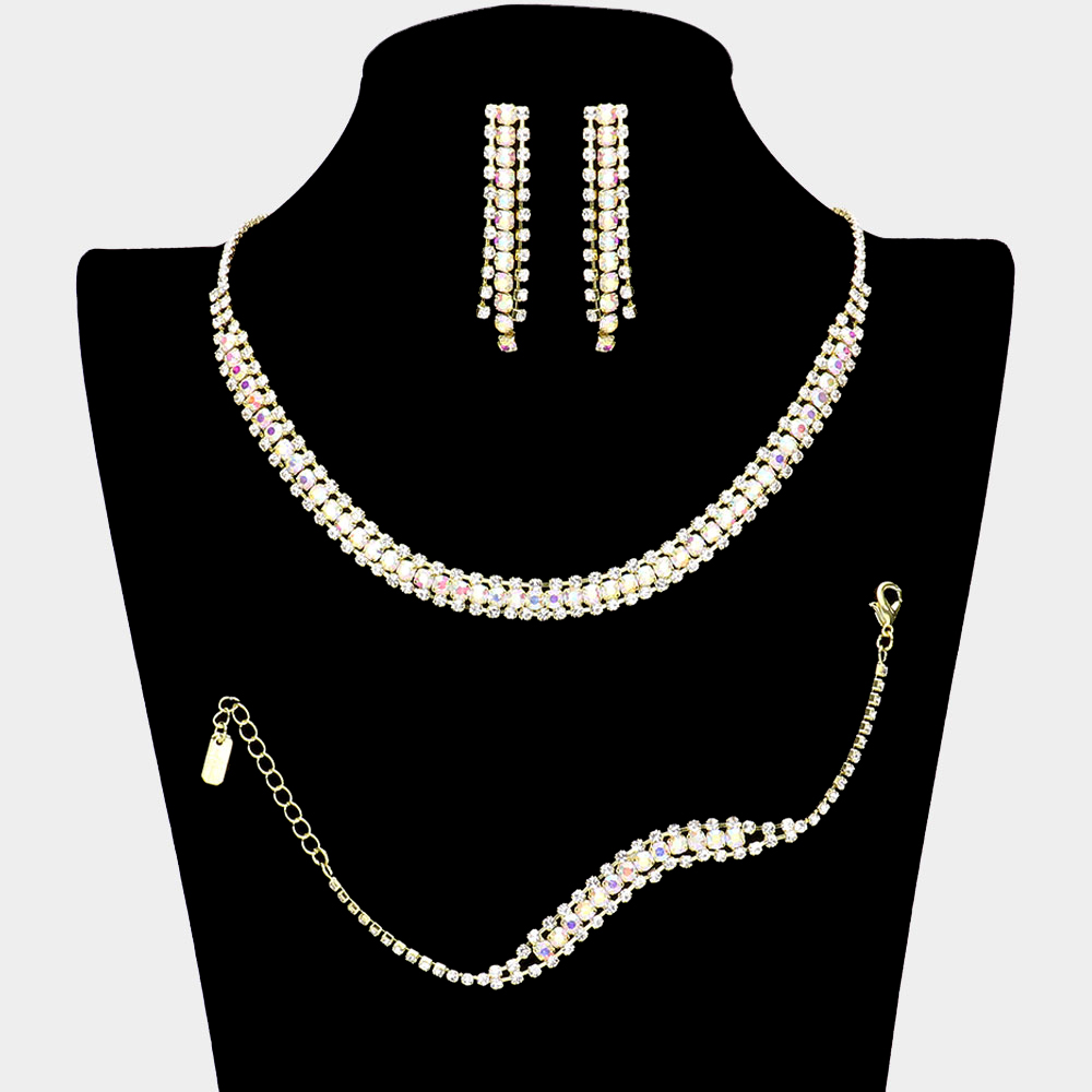 3PCS - Rhinestone Necklace Jewelry Set