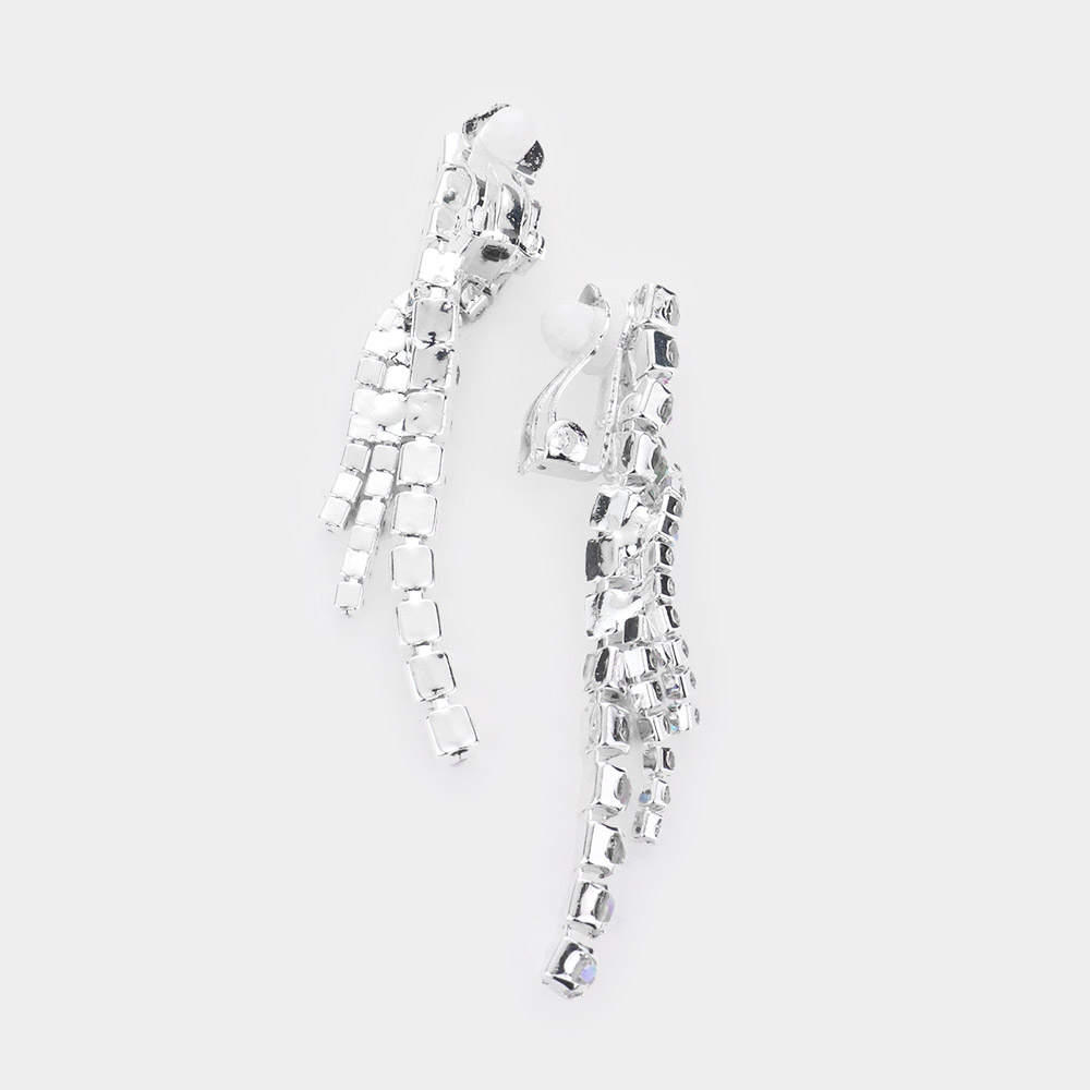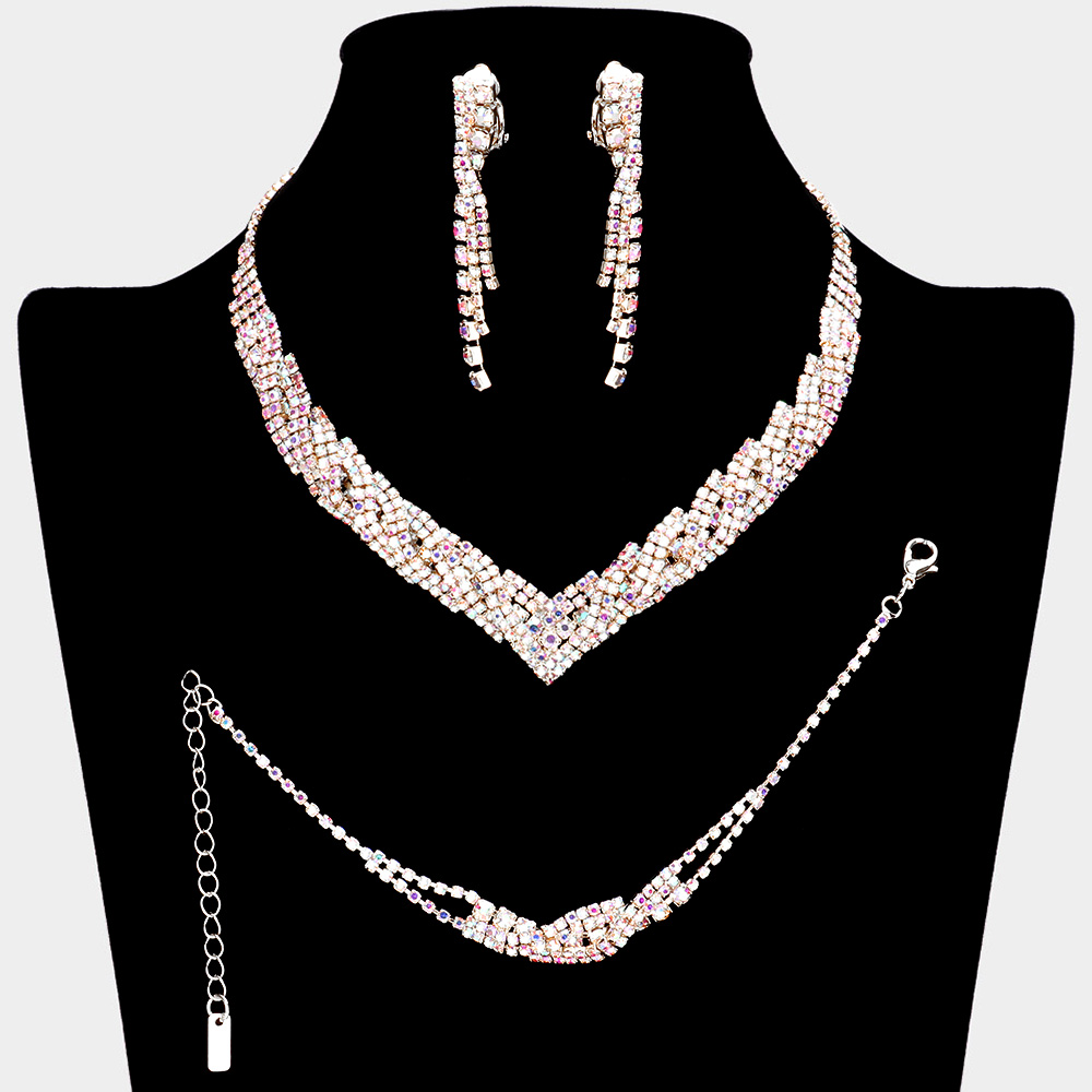 3PCS - Rhinestone Pave Necklace Clip On Earring Jewelry Set