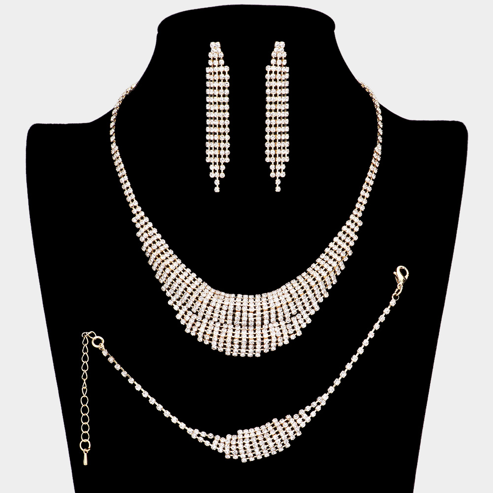 3PCS - Rhinestone Pave Necklace Jewelry Set